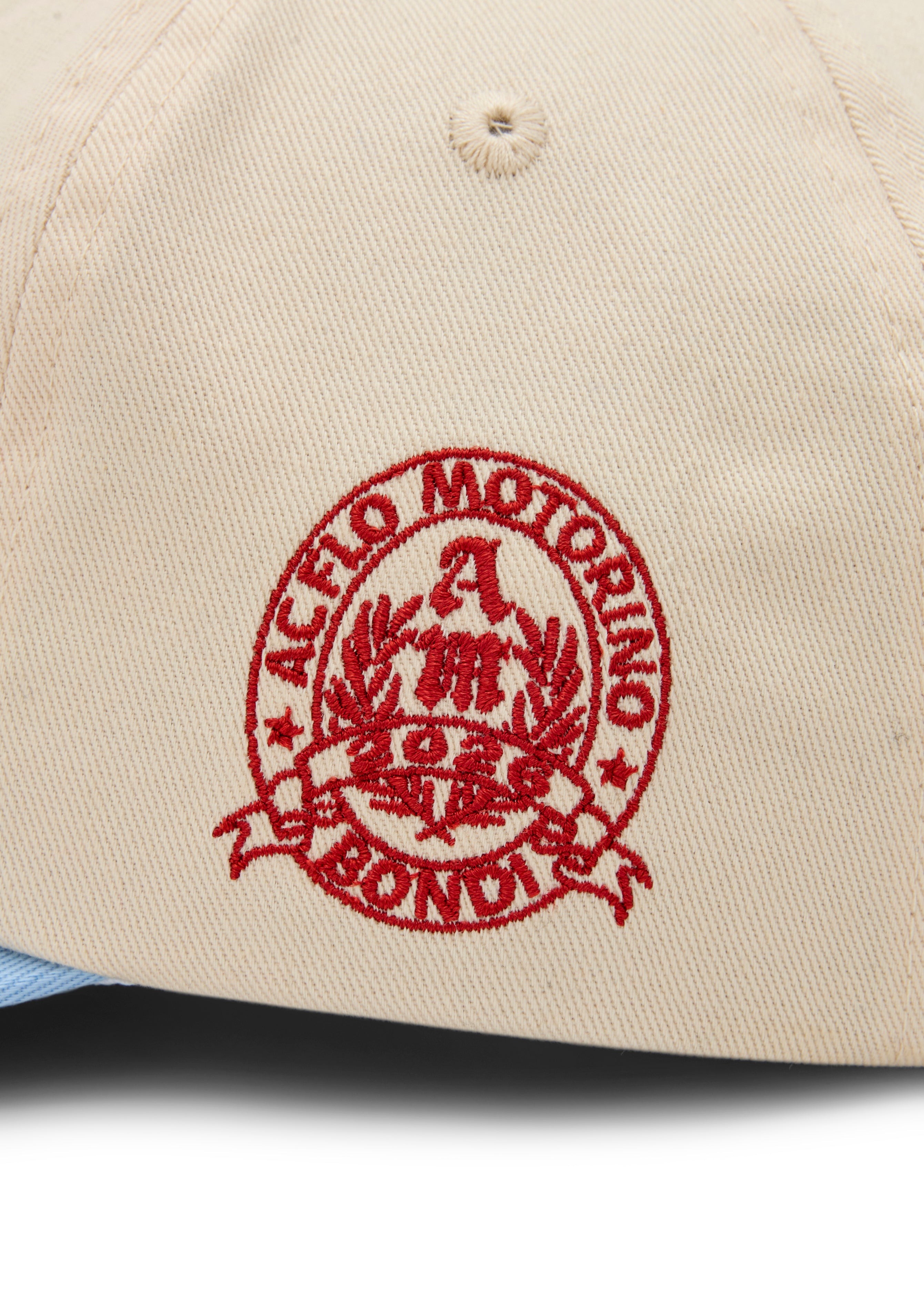 - Cream crown with contrast blue brim