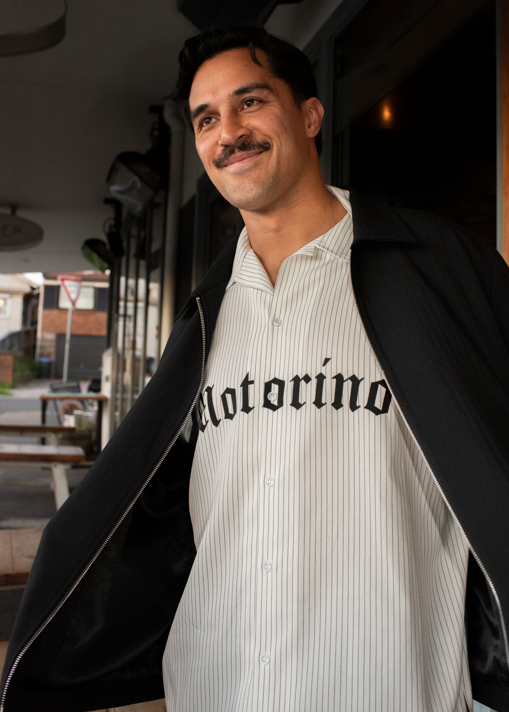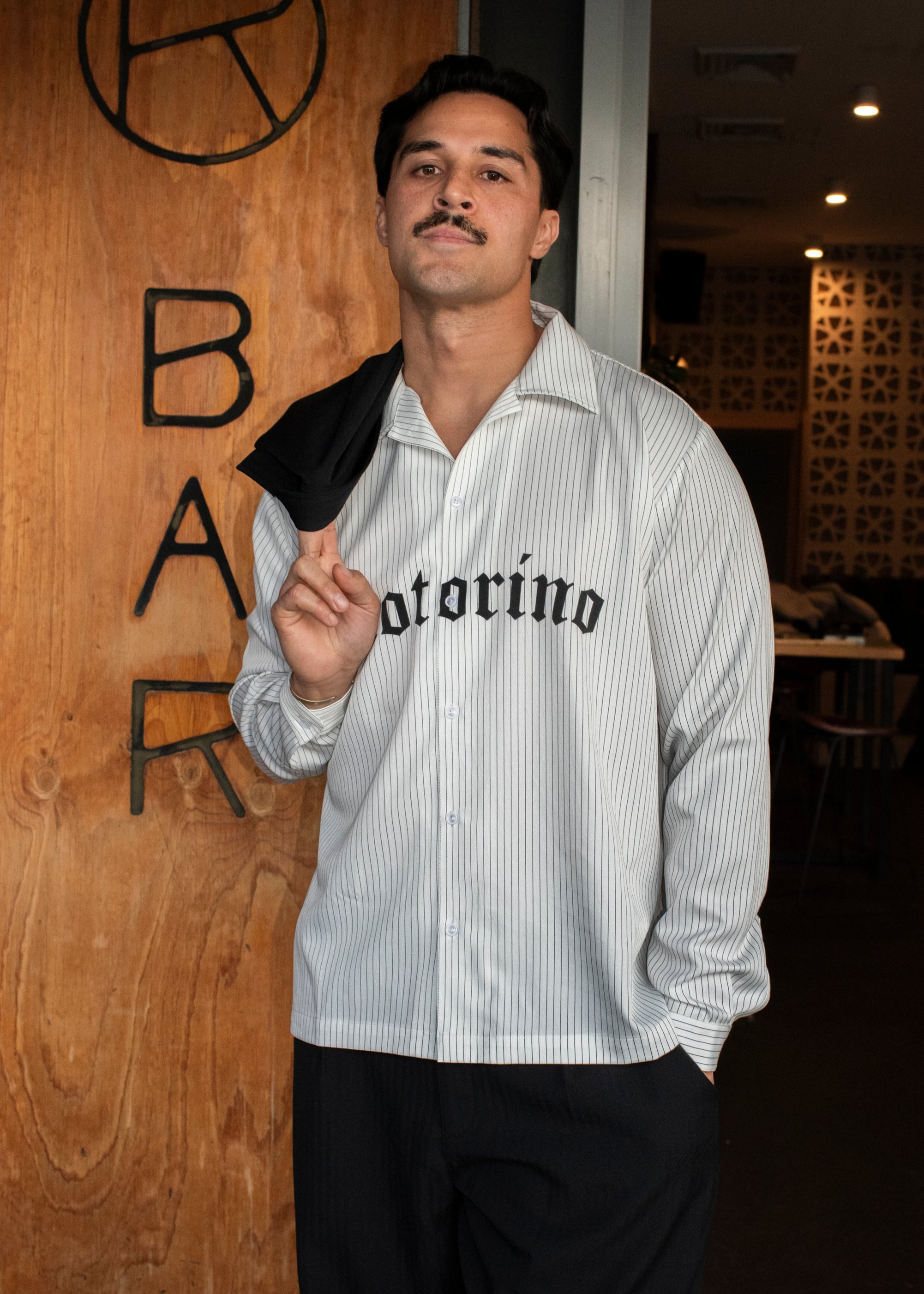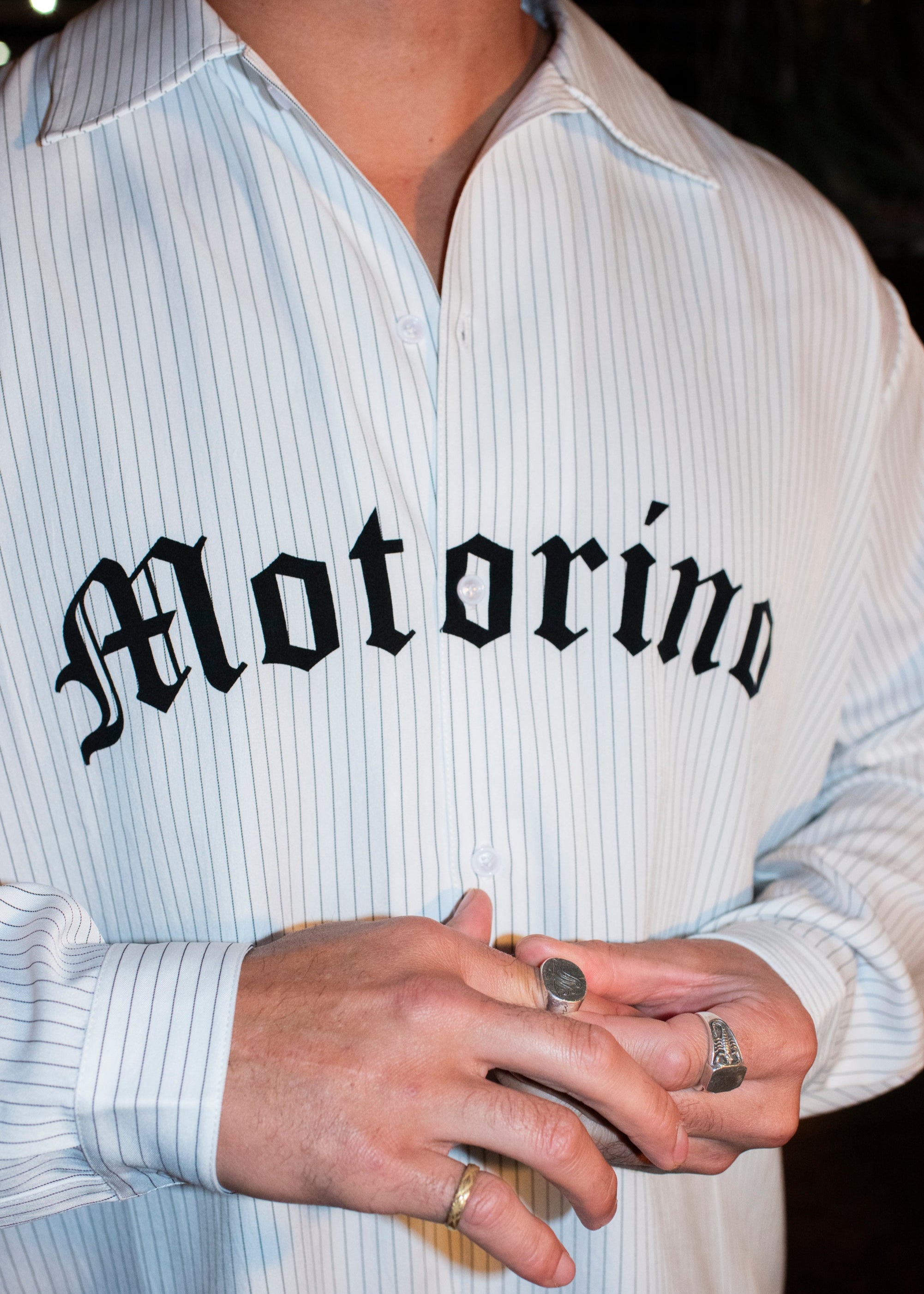 The Motorino Pinstripe Shirt is crafted from lightweight cotton poplin with a clean black-and-white stripe pattern. Featuring a relaxed fit with a classic collar, button closure, and bold Old English Motorino logo across the chest, it blends refined shirting with street-inspired edge. Perfect for layering or wearing solo, it’s a versatile staple, making you look sharp with ease.