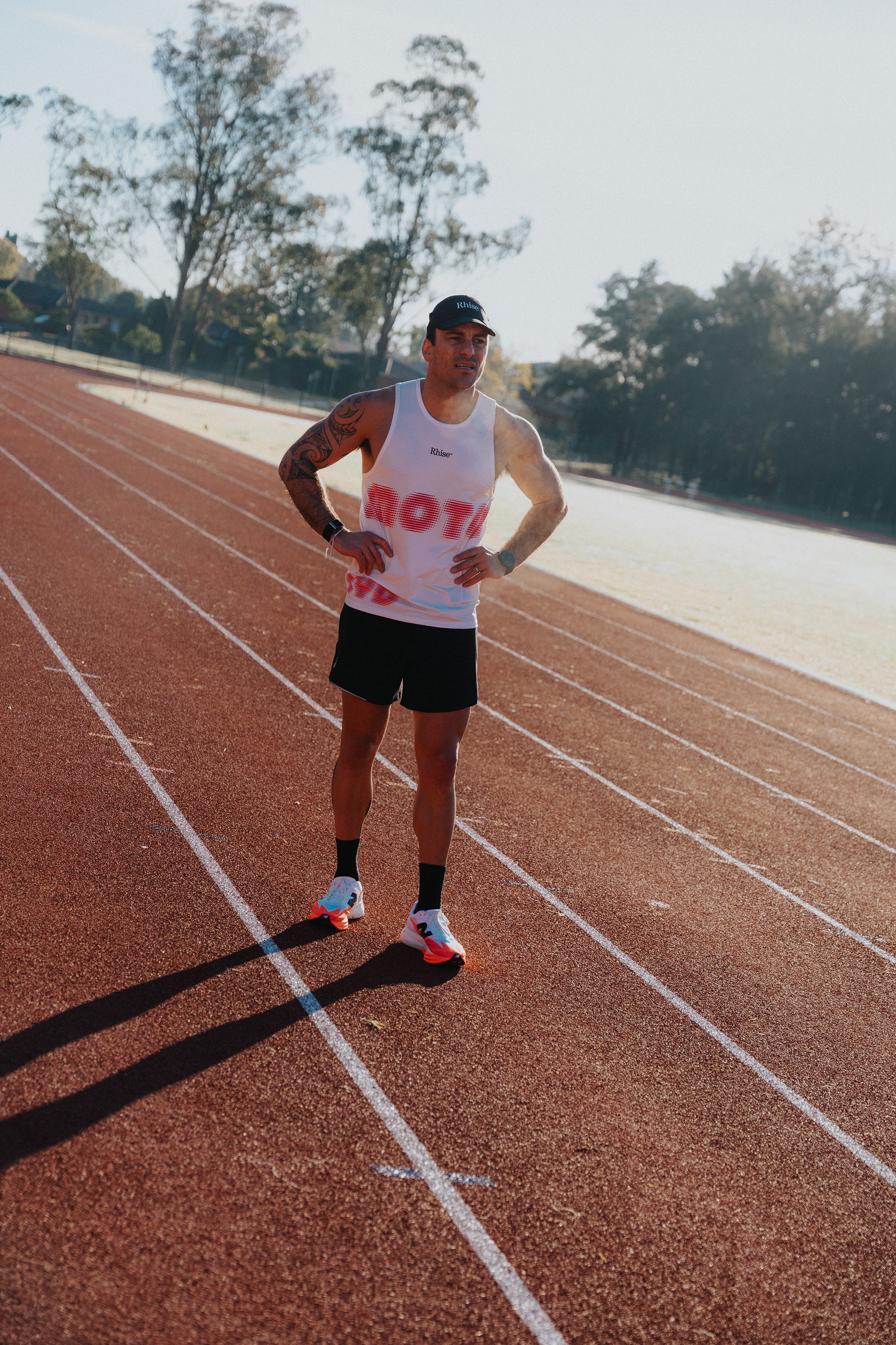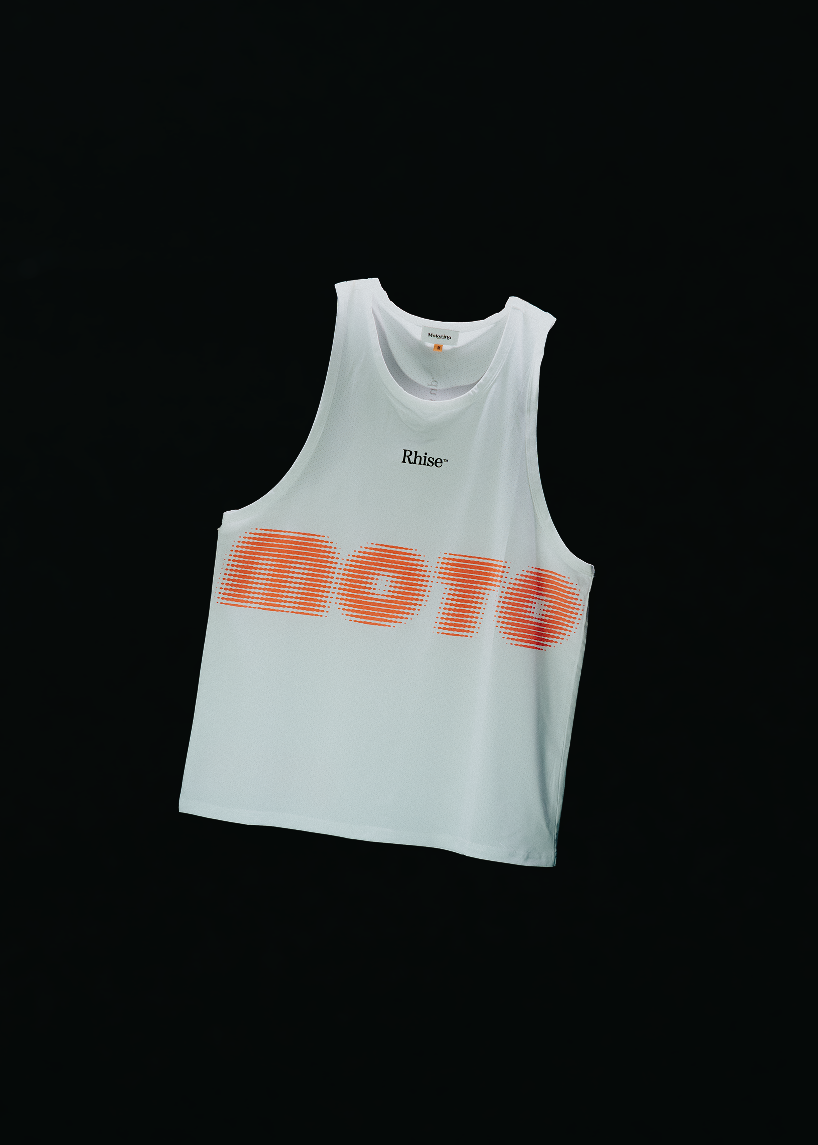 The Rhise x Moto Performance Singlet blends stretch, airflow, and sweat-wicking tech so nothing holds you back.