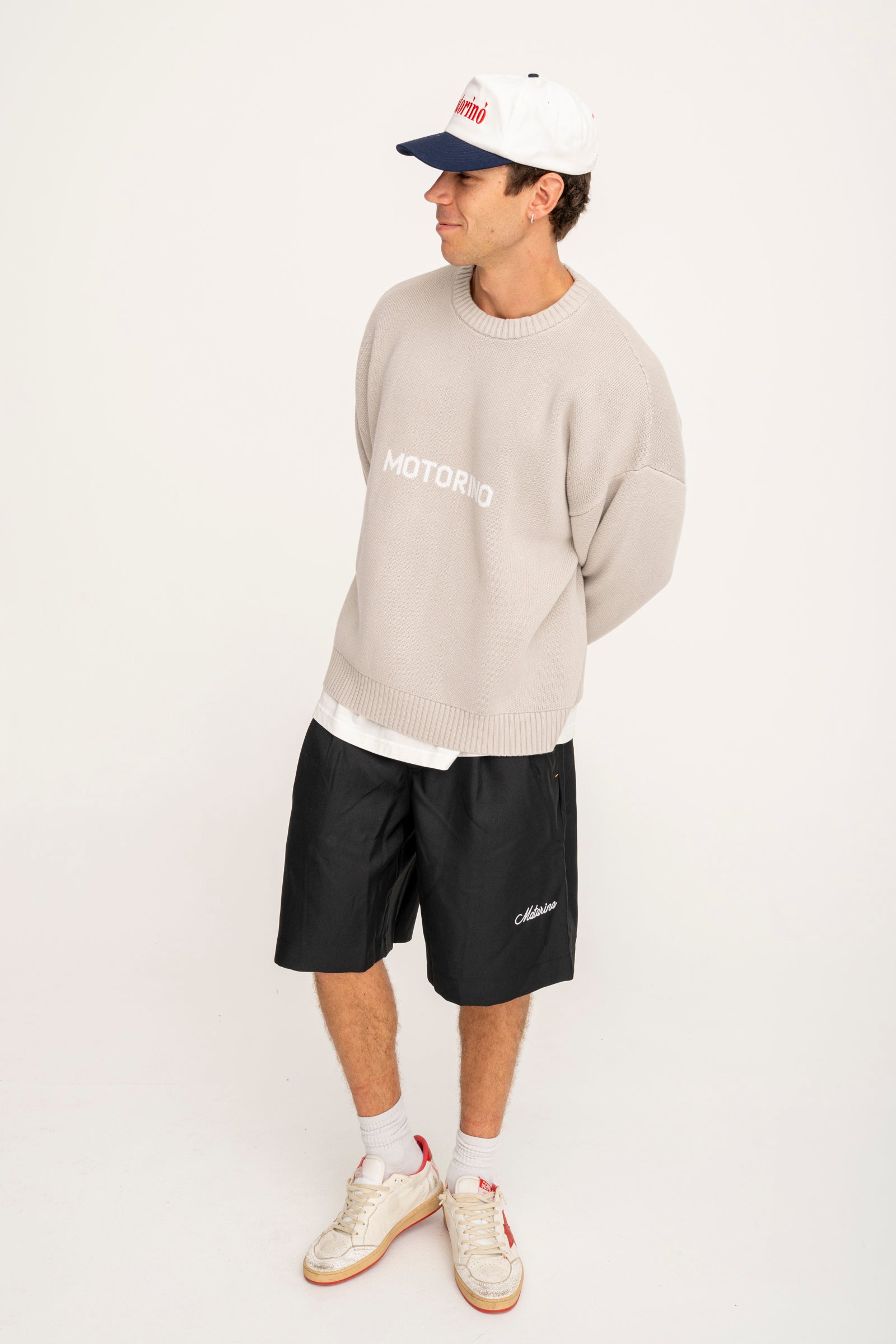 Motorino's knit game is back, but levelled up. Our most premium garment we've released to date. Featuring a perfectly cropped waist, dropped shoulders, thick neck and wrist trimmings. A versatile and warm crew that is easy to dress it up or down.