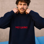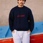 Motorino's knit game is back, but levelled up in a first ever navy and red colour combination. Our most premium garment we've released to date. Featuring a perfectly cropped waist, dropped shoulders, thick neck and wrist trimmings. A versatile and warm crew that is easy to dress it up or down.