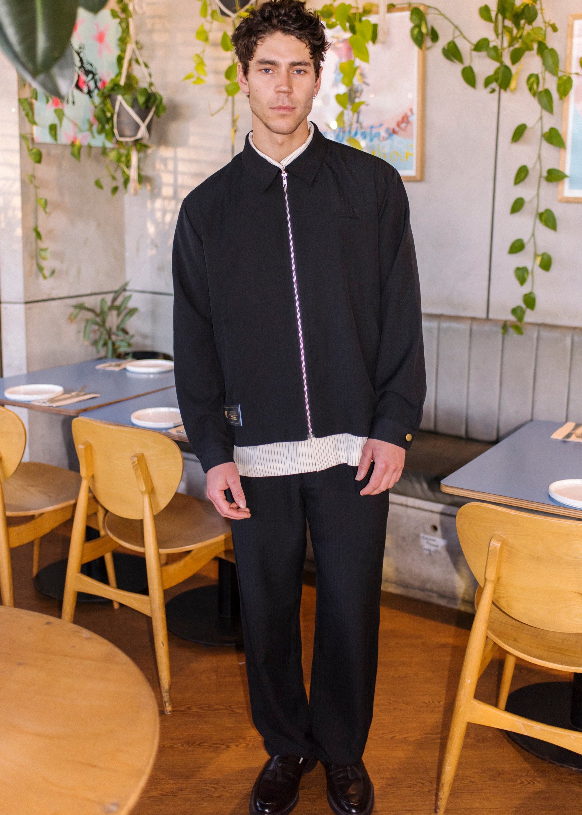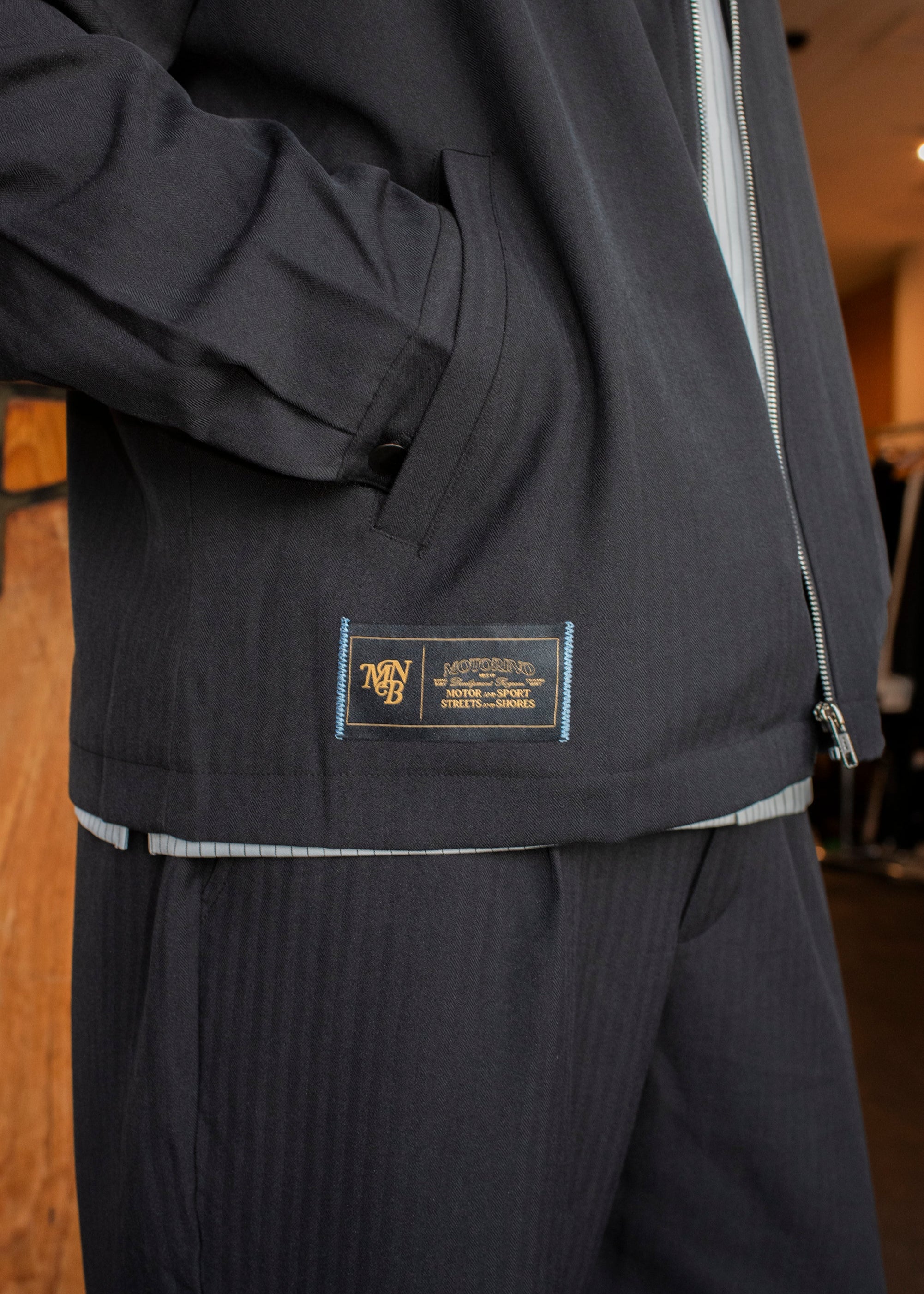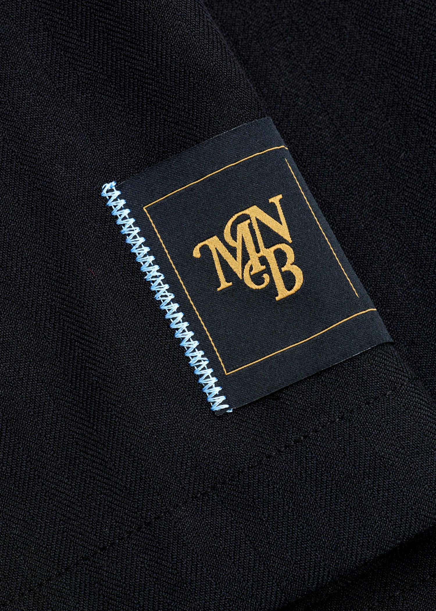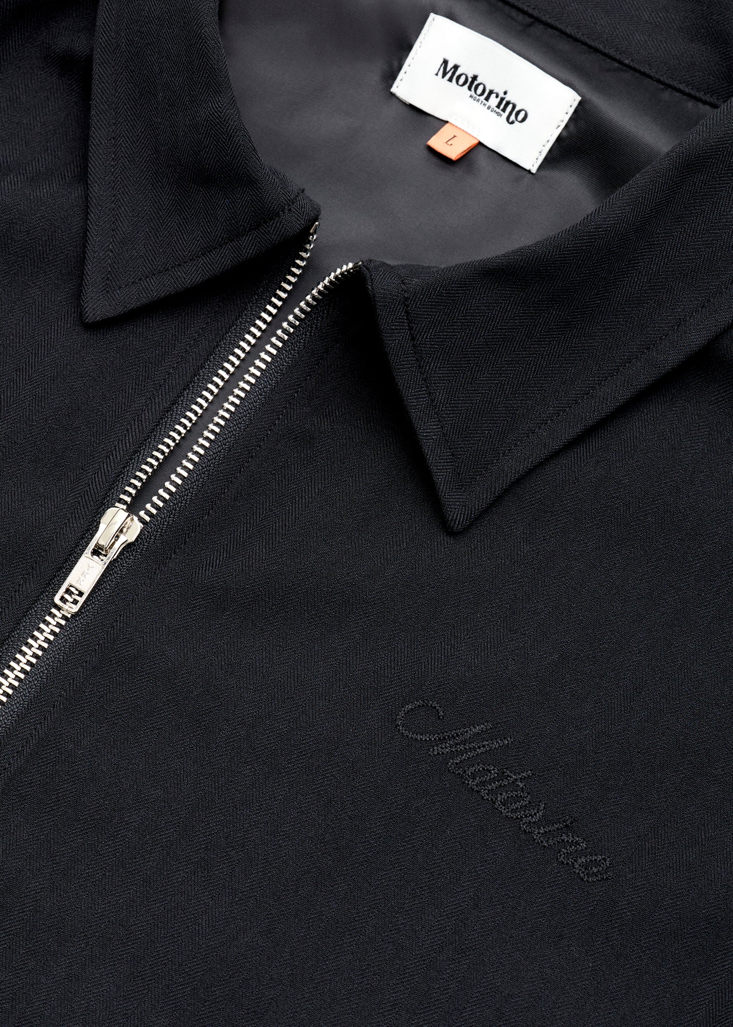 The Motorino Tailored Jacket is a modern take on a wardrobe classic, cut from black herringbone for a refined yet easy-wearing finish. Designed with a sharp collar, full zip closure, and finer label details, it balances clean tailoring with everyday functionality. A custom Motorino woven label at the hem add signature detailing, making it a versatile layer for both smart and casual settings.