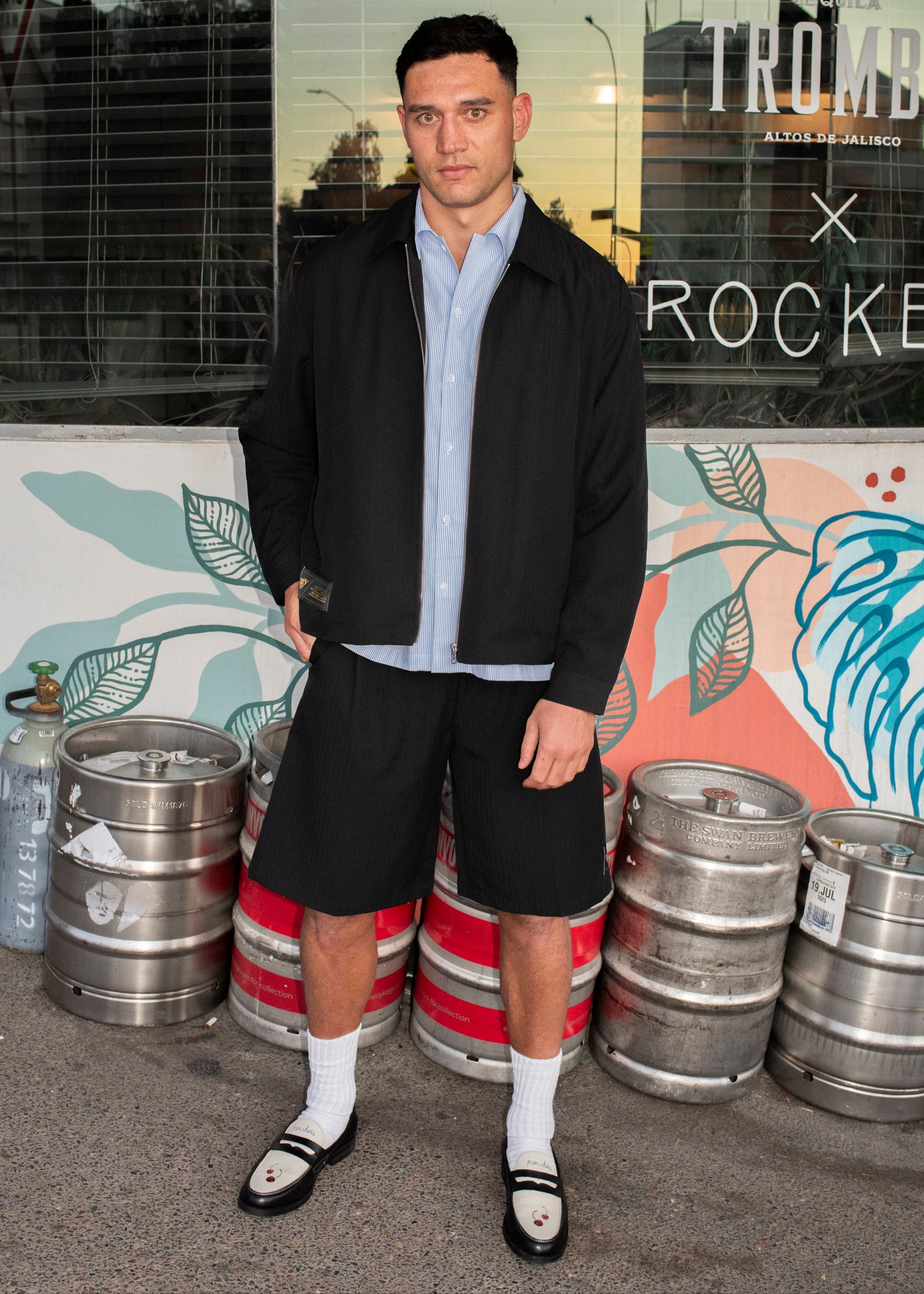 - Model Mitch is 6'0 and 83kg and is wearing a size Large