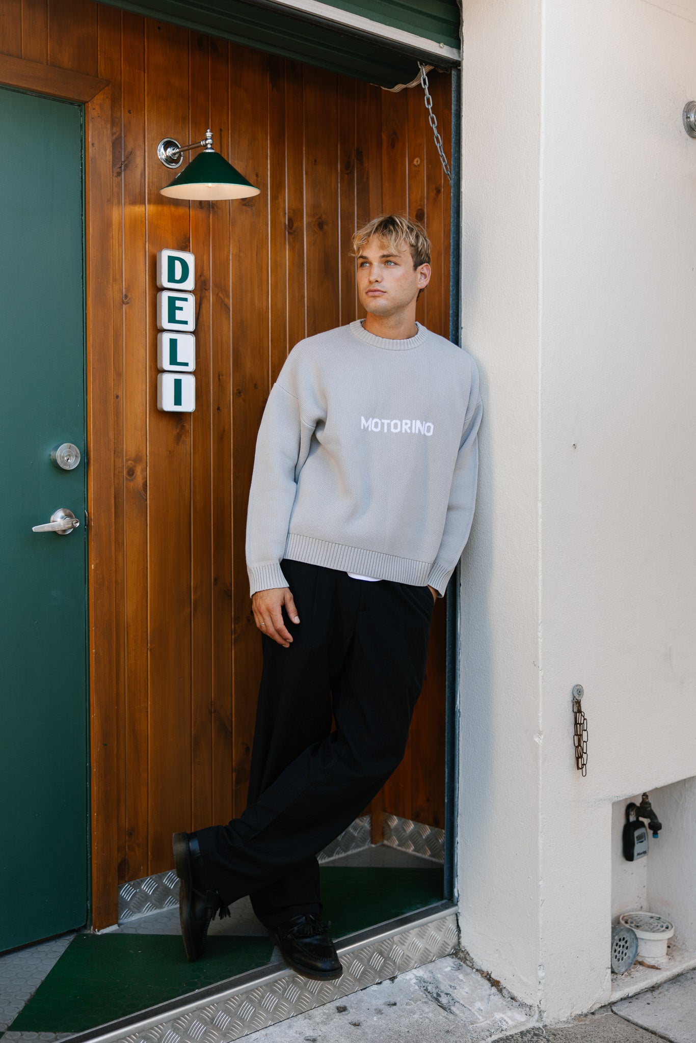 Motorino's knit game is back, but levelled up. Our most premium garment we've released to date. Featuring a perfectly cropped waist, dropped shoulders, thick neck and wrist trimmings. A versatile and warm crew that is easy to dress it up or down.