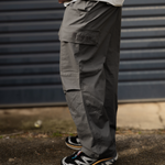 A staple reworked with subtle edge. These gunmetal grey cargo pants are built for everyday wear with just the right amount of attitude. The muted dark grey tone keeps things sleek and versatile—easy to dress up, down, or somewhere in between.