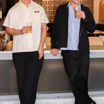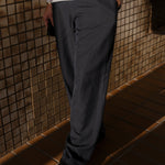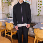 The Tailored Pant is crafted from black herringbone for a refined texture with everyday versatility. Designed with a relaxed straight leg, front pleats, and an elasticated waistband with belt loops, they balance tailored structure with comfort. Finished with a woven label sewn on the the back, these pants pair seamlessly with the matching jacket or can be styled on their own for an elevated casual look.