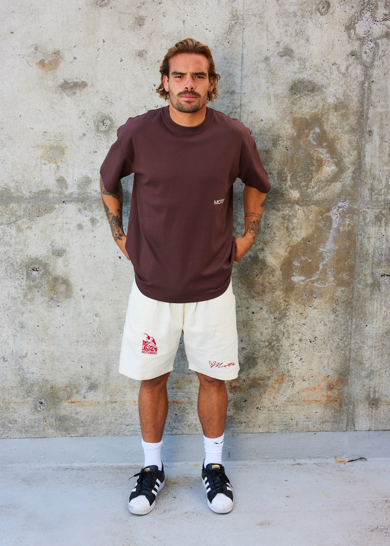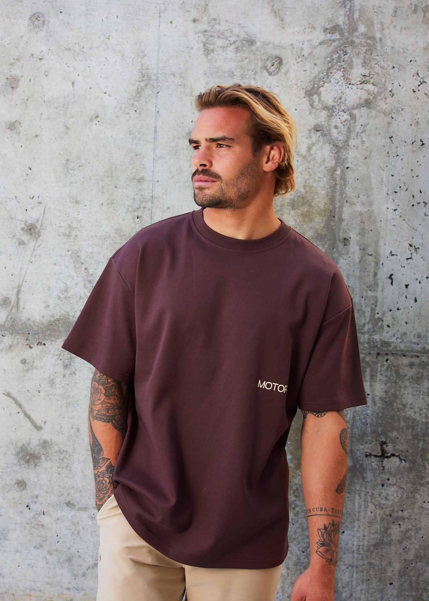 Motorino's Heavy Weight Tee. Brown colour-way ft the previously sold out Club Tee design. Made with a premium fabric blend that has received a wave of love, we had to bring it back. This fabric and tee is as good as it gets. We had to bring it back.
