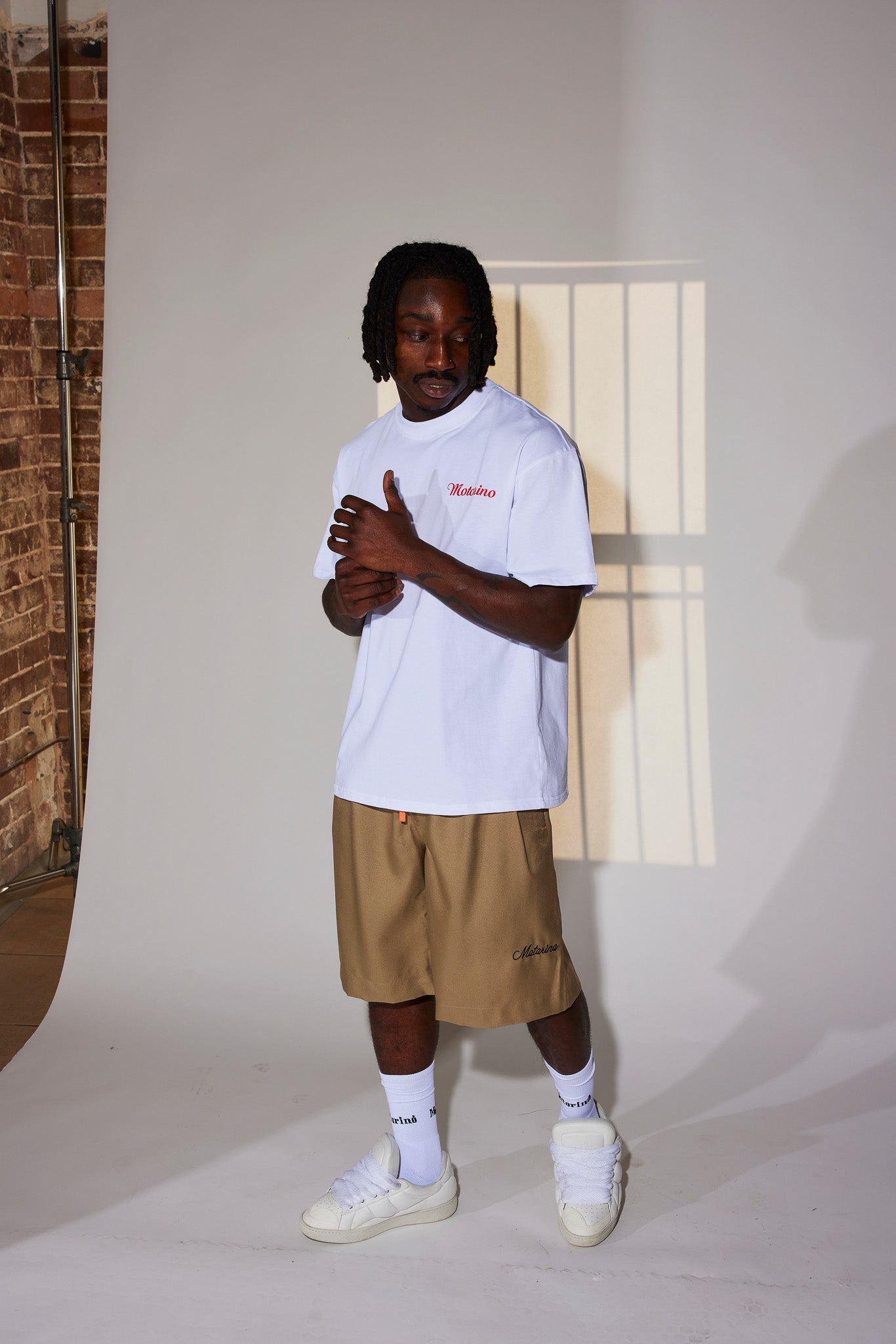 MThe Everyday Pleated Short: our sleekest design yet, now available in a 90s inspired beige cargo colour. These shorts are the ultimate versatile addition to any spring wardrobe. Crafted from polyester twill with a subtle shine, they're perfect for dressing up while still casual enough to pair with anything. Featuring an over-the-knee length and Motorino chain stitch embroidery for added detail.