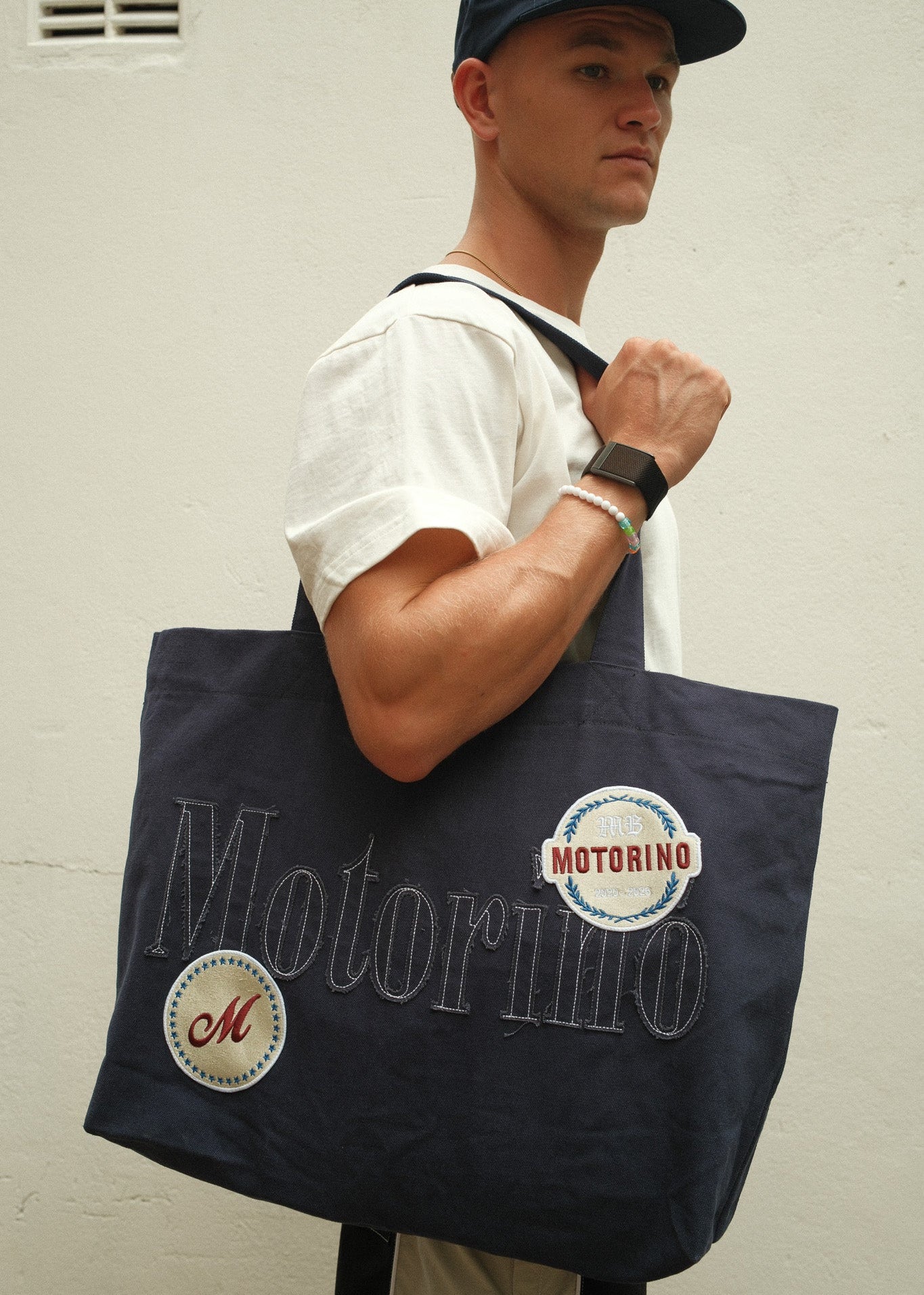 • Oversized applique Motorino logo on front