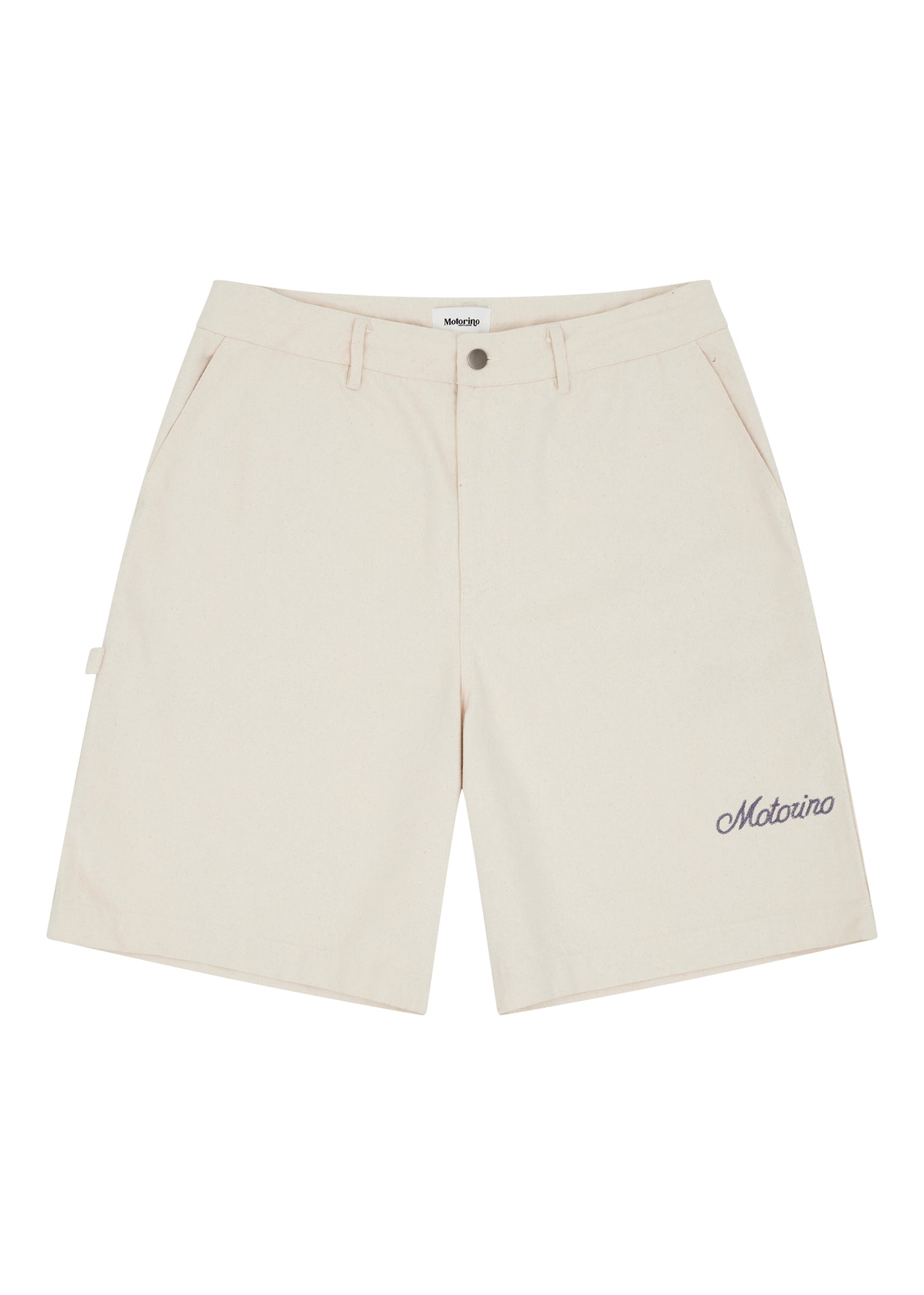 Cut from durable cotton canvas, the Embroidered Cargo Short blends utility design with refined finishing. The relaxed silhouette is paired with functional cargo pockets and subtle Motorino branding, including custom script embroidery and heritage patch artwork.