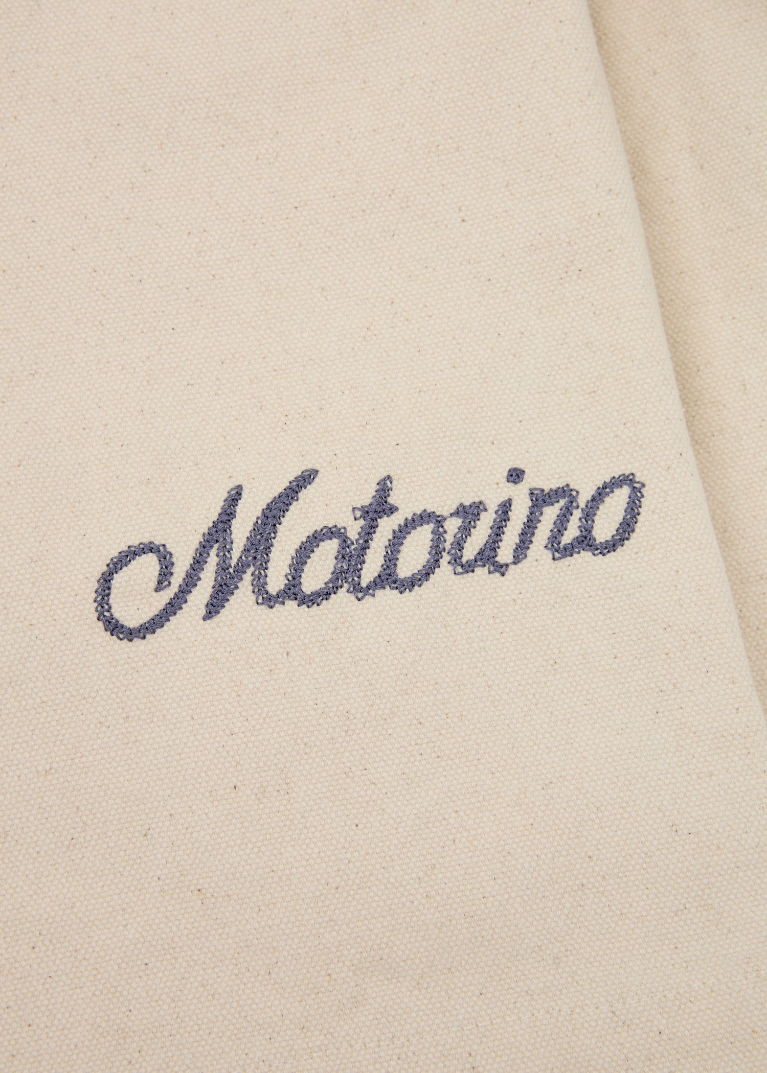 - Navy Embroidered Motorino script artwork and patch detail