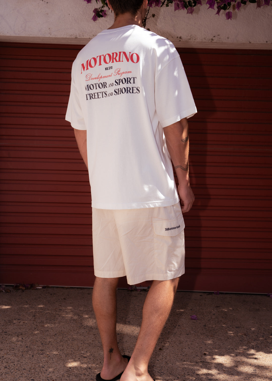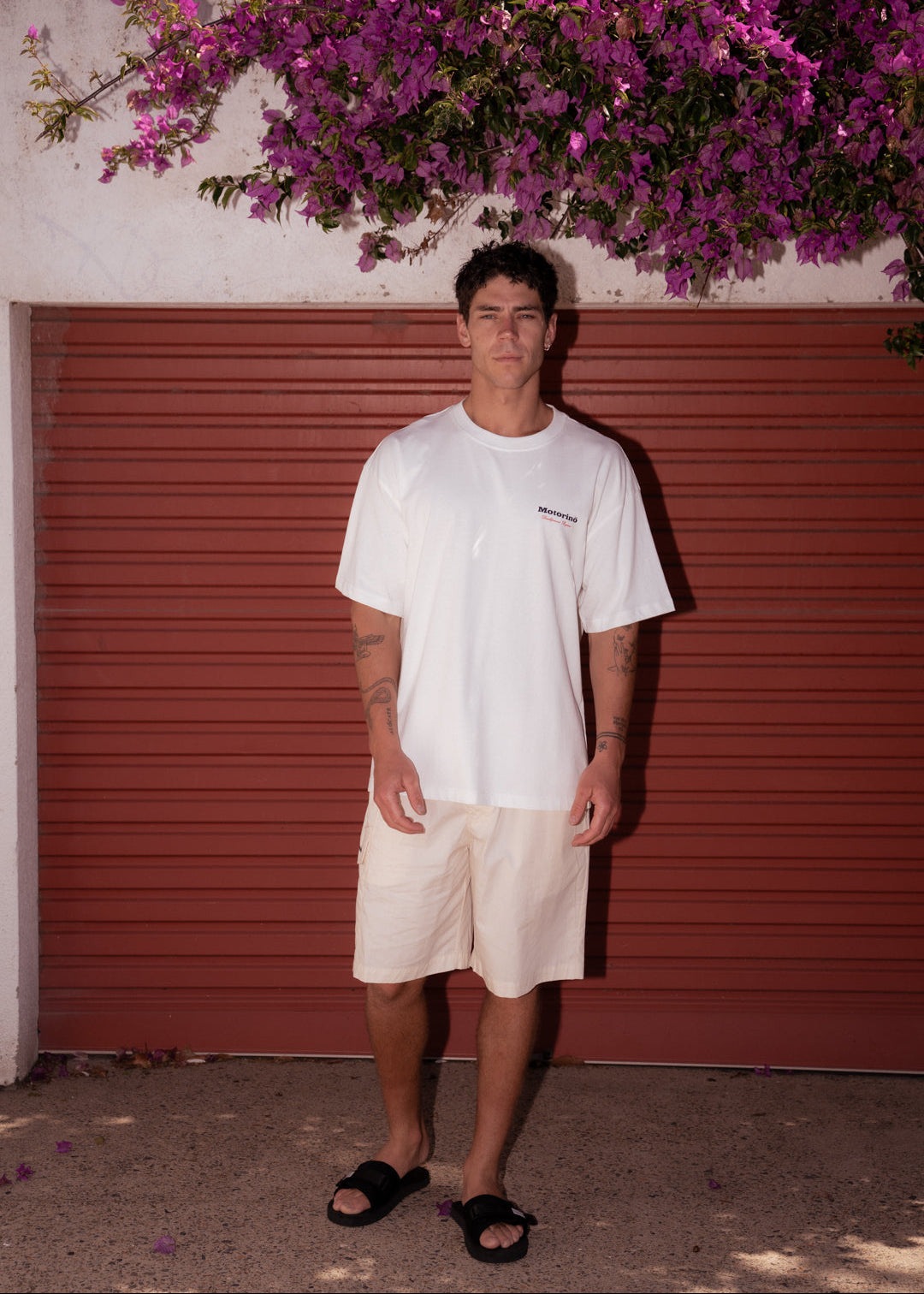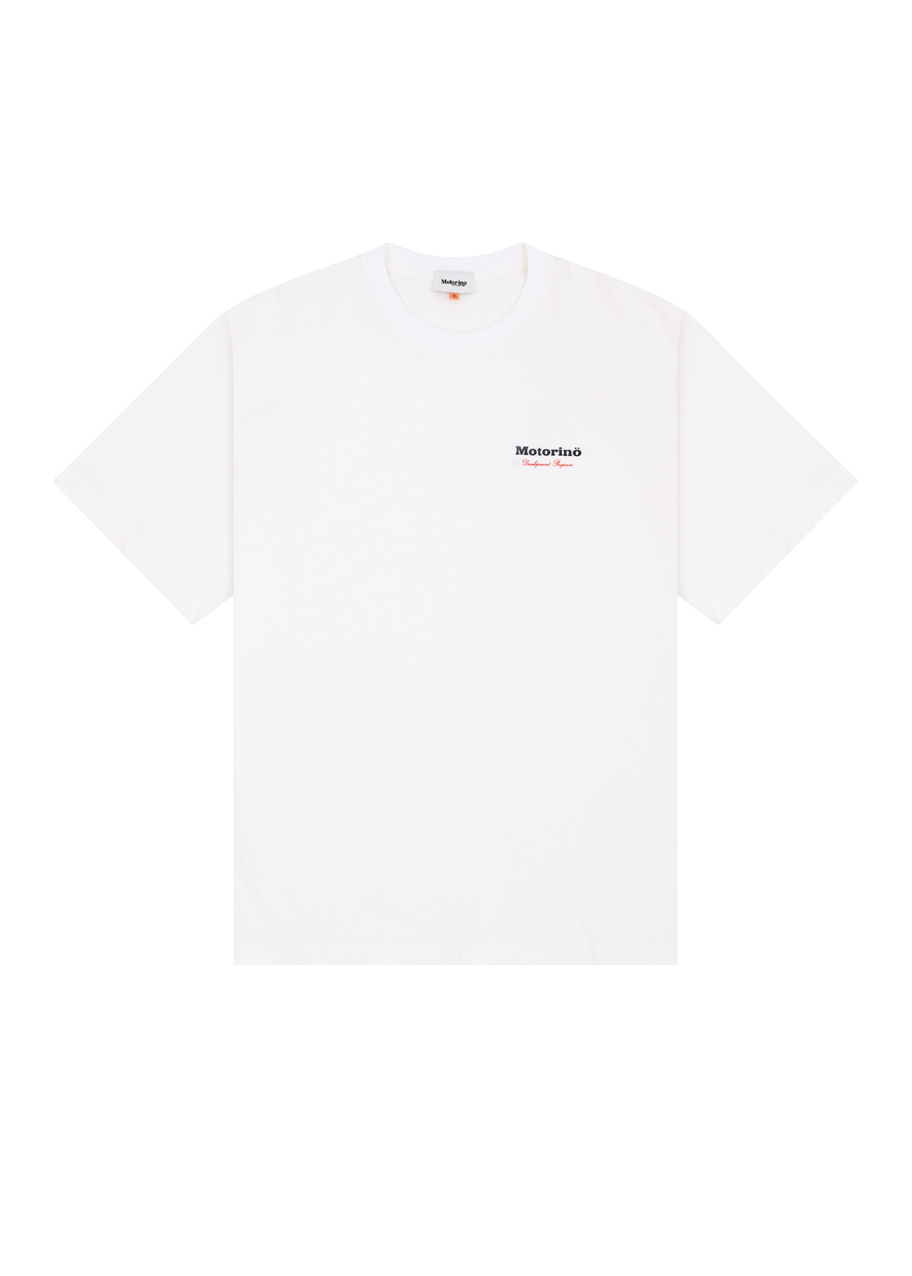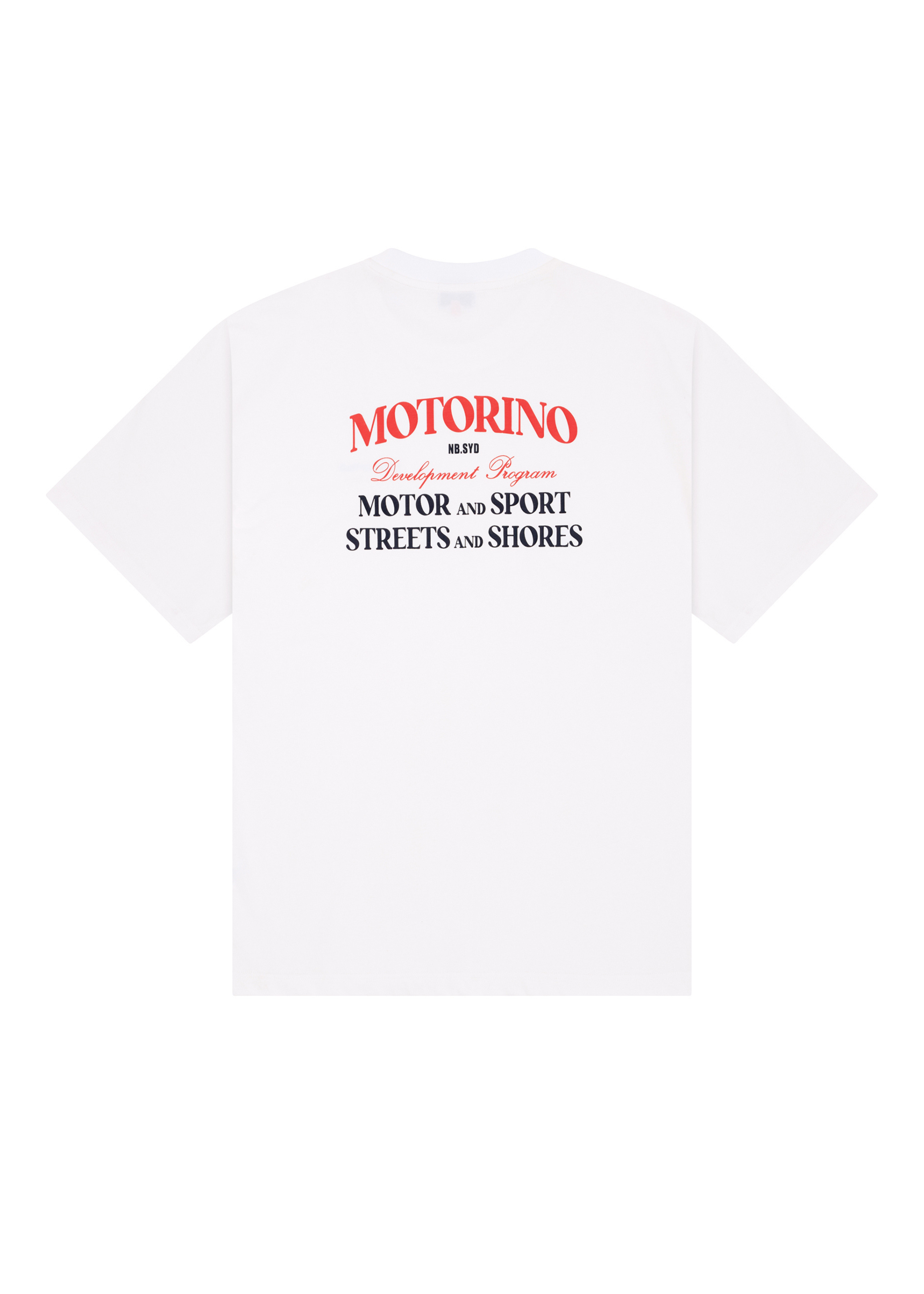 An ode to our Motor & Sports heritage, featuring our brand new Motorino Heritage Design printed on the front and back. This crisp white tee is effortless cool - clean, classic, and made to be worn on repeat. In our favourite colour-way. It’s the kind of staple that fits every scene. Simple. Timeless. Always in rotation.