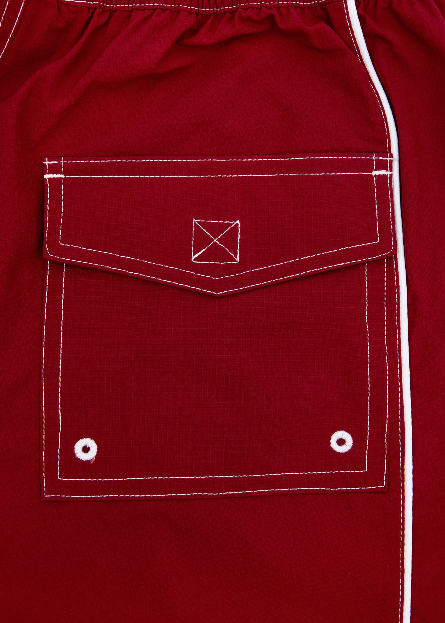 Designed for versatility, these are built to move with you - whether you're by the water, on the street, or on the bike. Cut from a lightweight, quick-dry nylon blend, these shorts balance performance and comfort with a relaxed fit and longer leg profile. The white piping detail and subtle Motorino script embroidery on the left leg nod to old school surf culture, while functional pockets and a drawstring waist keep them practical for everyday wear.