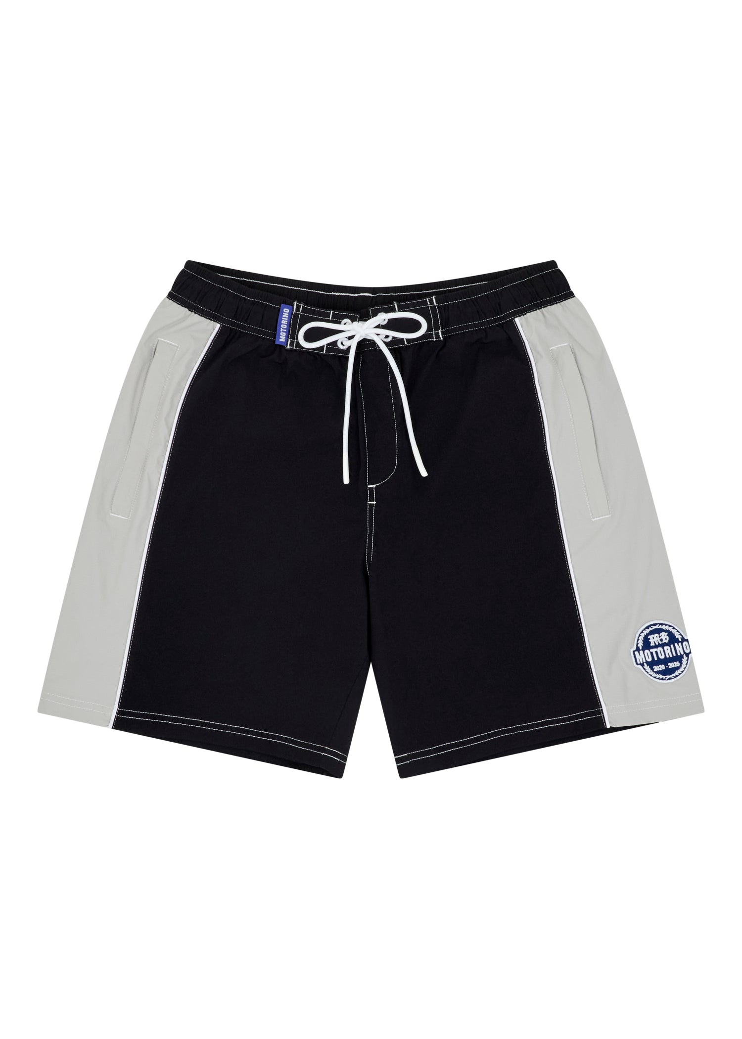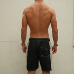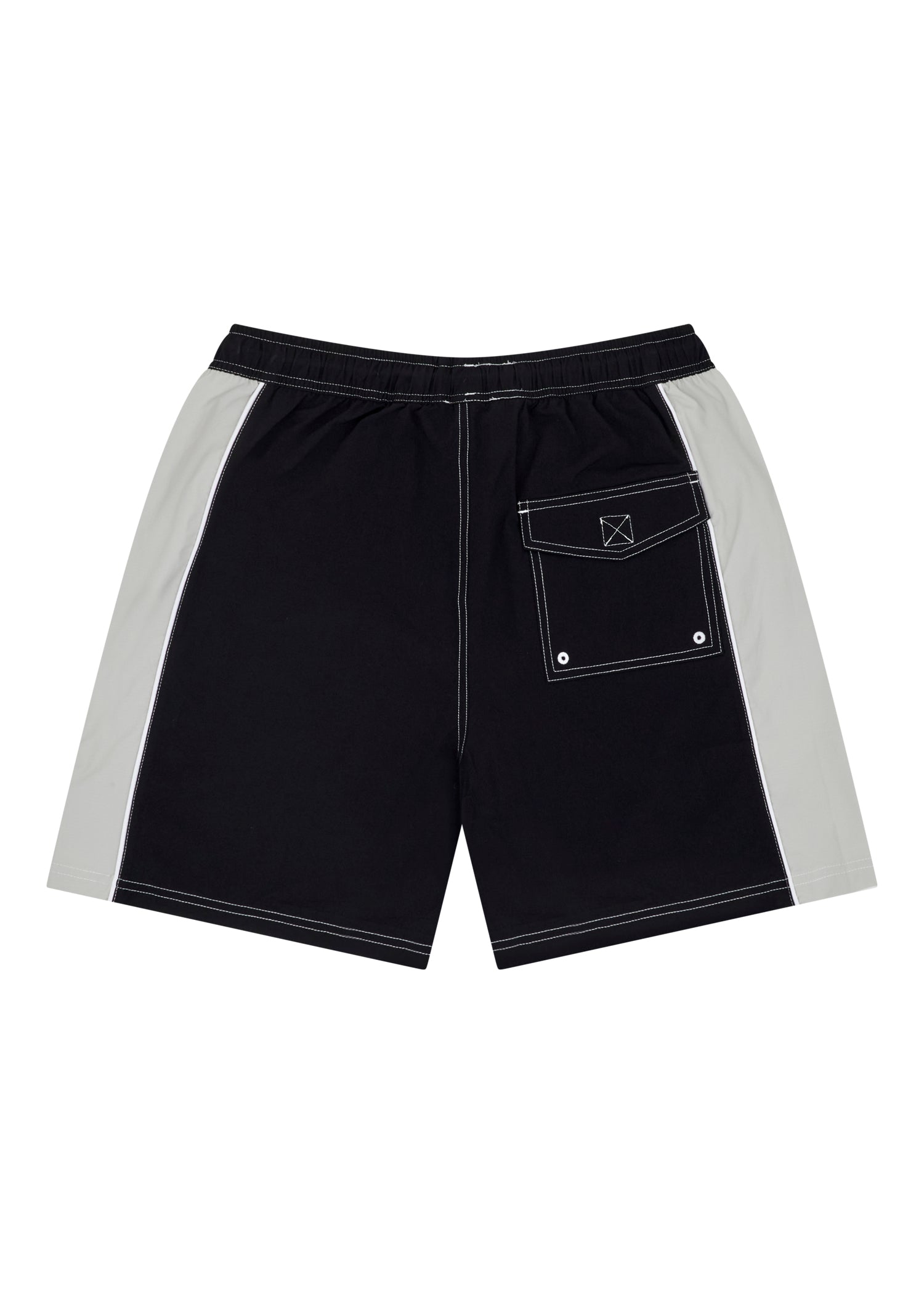 These boardshorts blend classic surf heritage with a modern fit built for both land and sea. Designed in a sleek black base with contrasting grey side panels, they feature a timeless look inspired by 90s surf culture. Crafted from quick-drying, lightweight polyester for all-day comfort, these boardies deliver functionality without compromising style. Whether you're hitting the beach, cruising the coast, or lounging post-surf, these shorts are made for times under the sun.