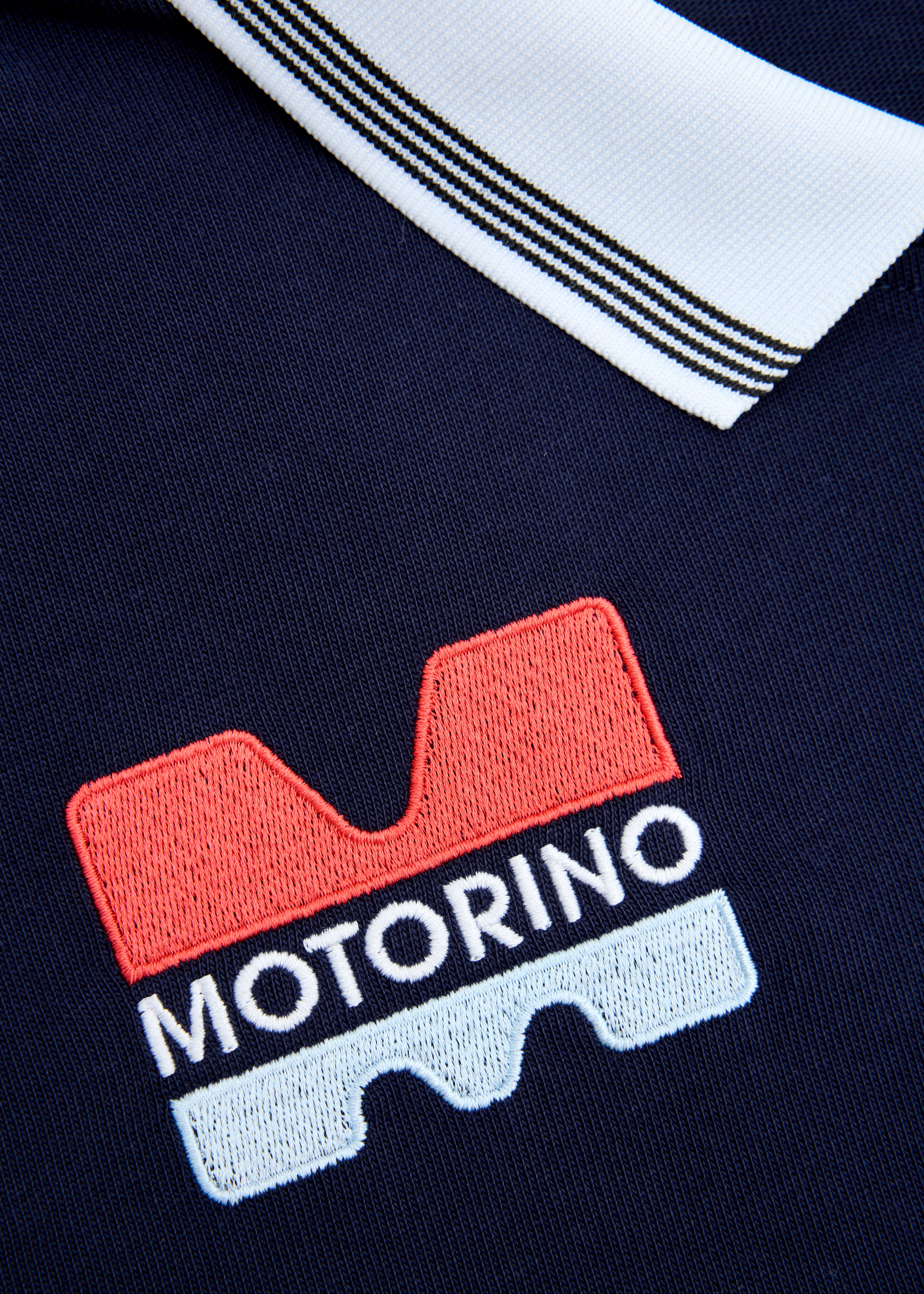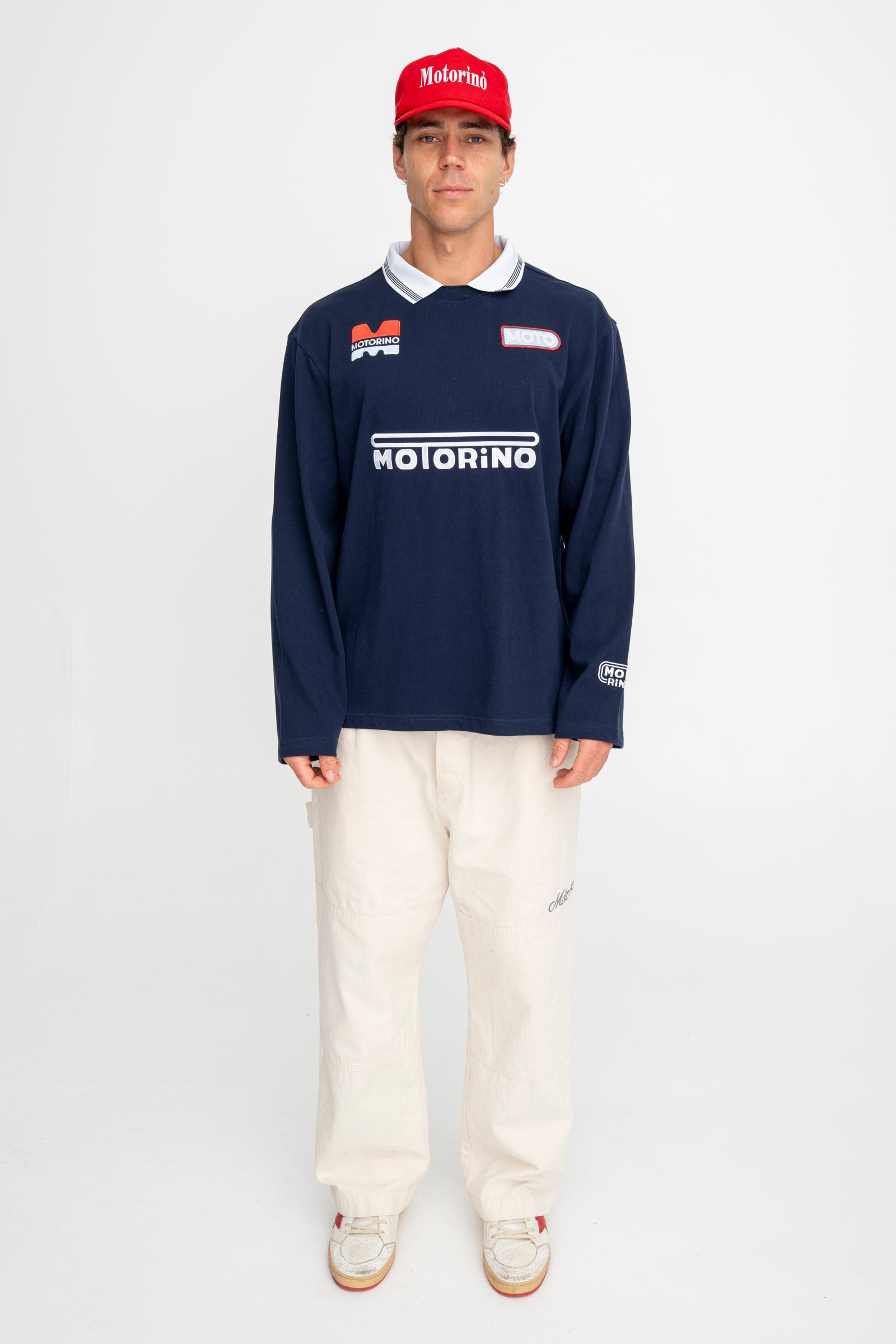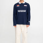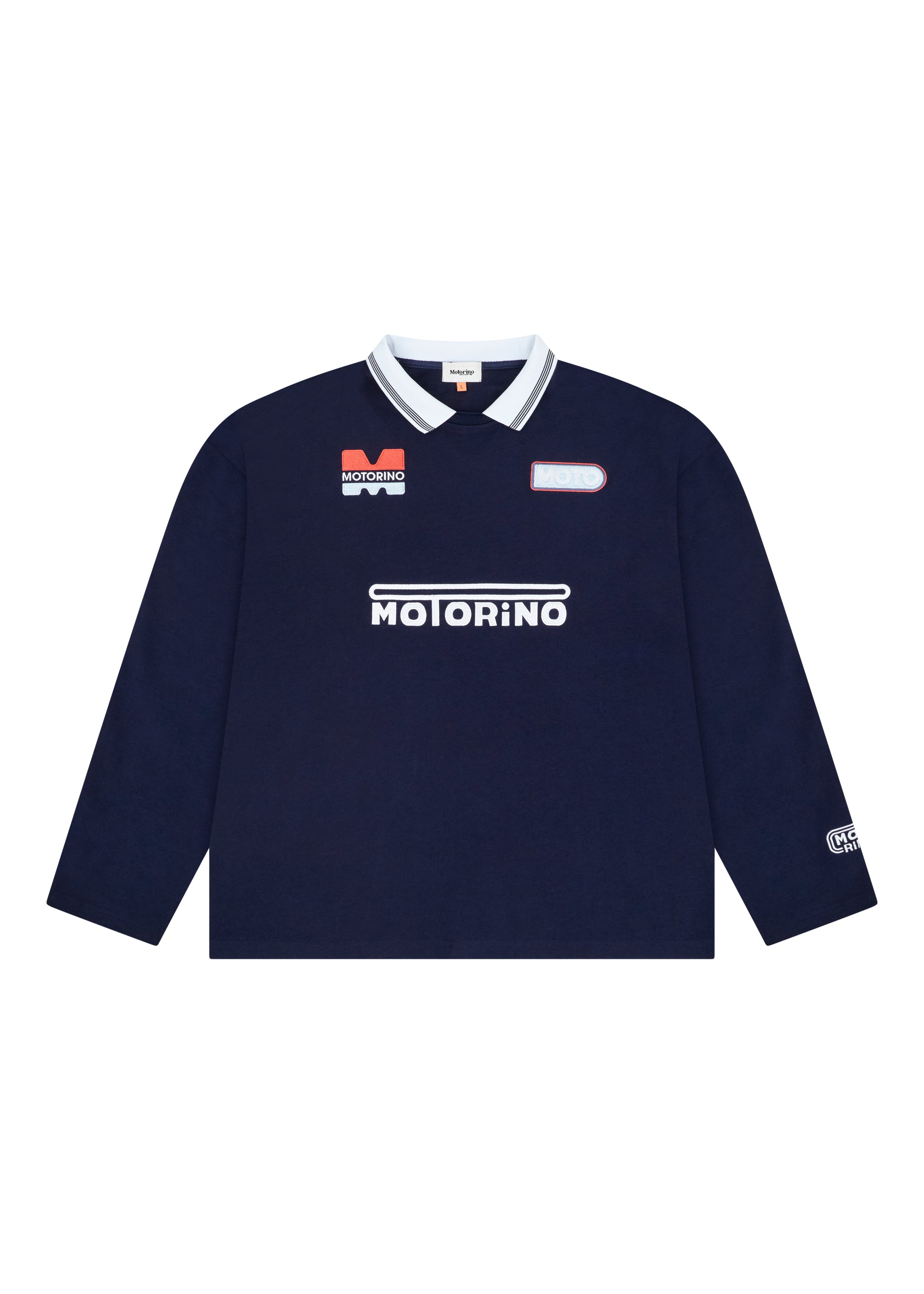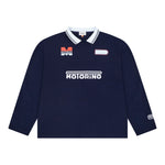 The Hybrid Jersey blends vintage kit styling with a relaxed long sleeve fit and soft cotton jersey construction. Finished with a contrast rib football collar, custom Motorino race tracking inspired chest artwork and sleeve embroidery.