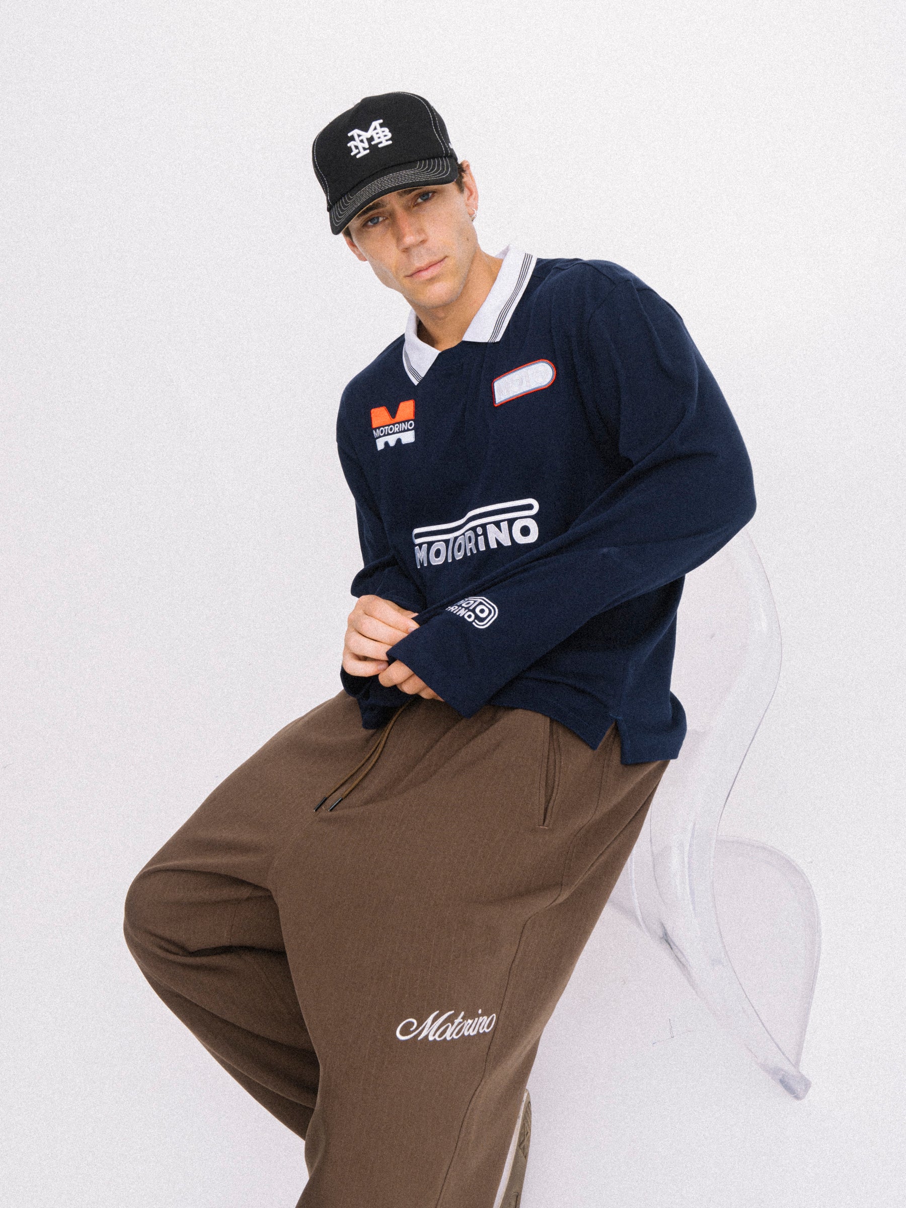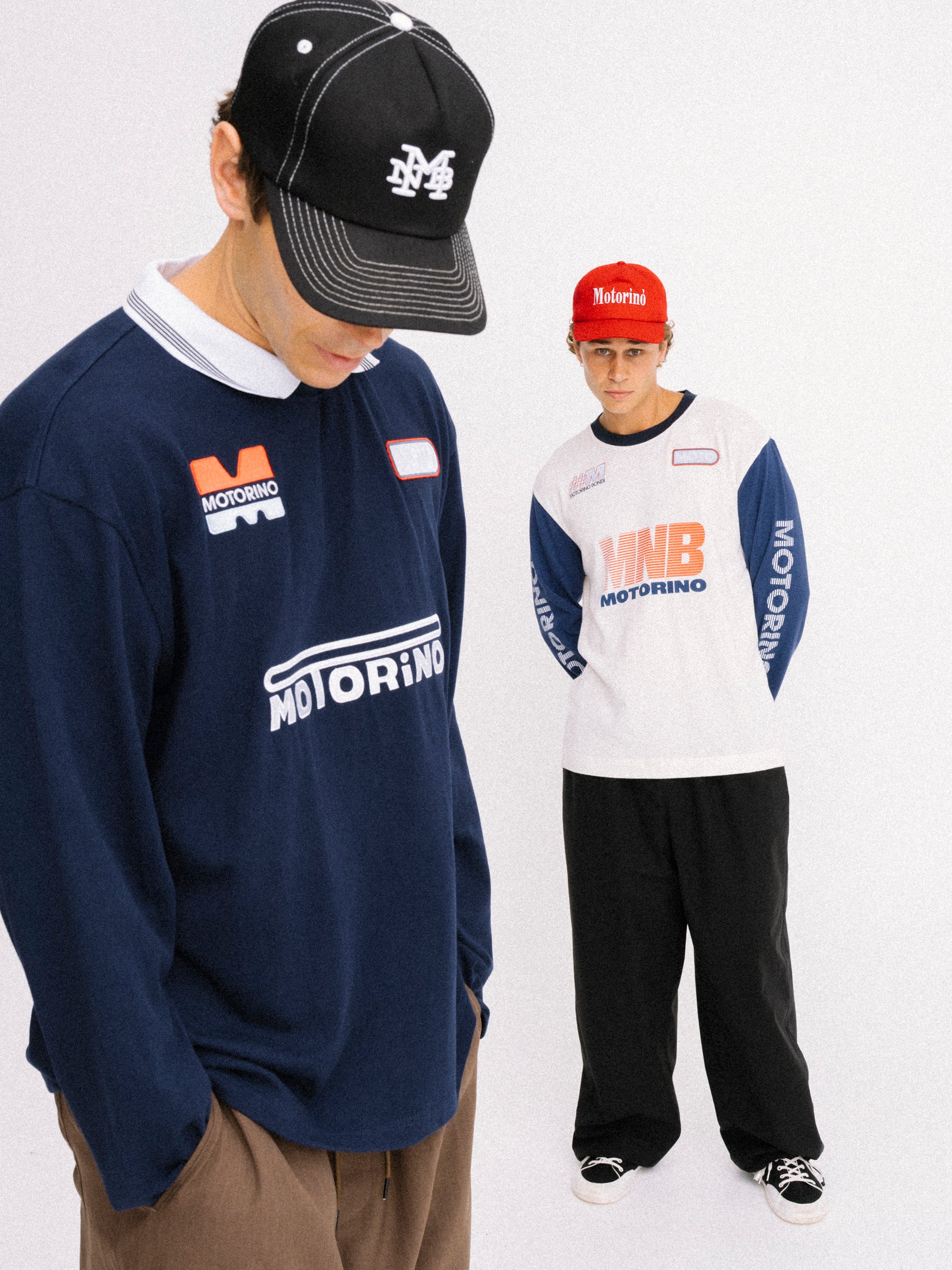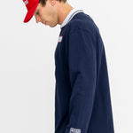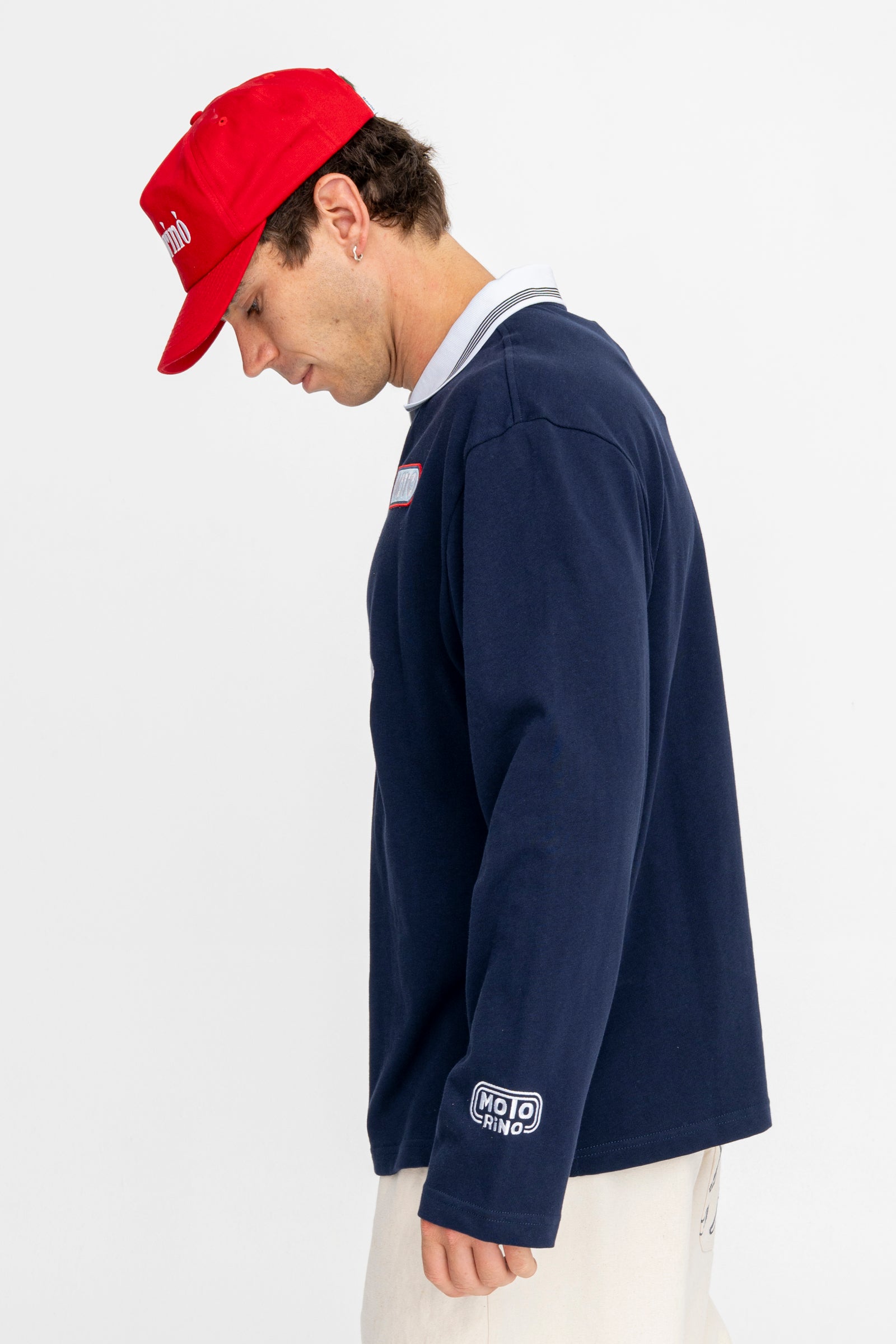 The Hybrid Jersey blends vintage kit styling with a relaxed long sleeve fit and soft cotton jersey construction. Finished with a contrast rib football collar, custom Motorino race tracking inspired chest artwork and sleeve embroidery.