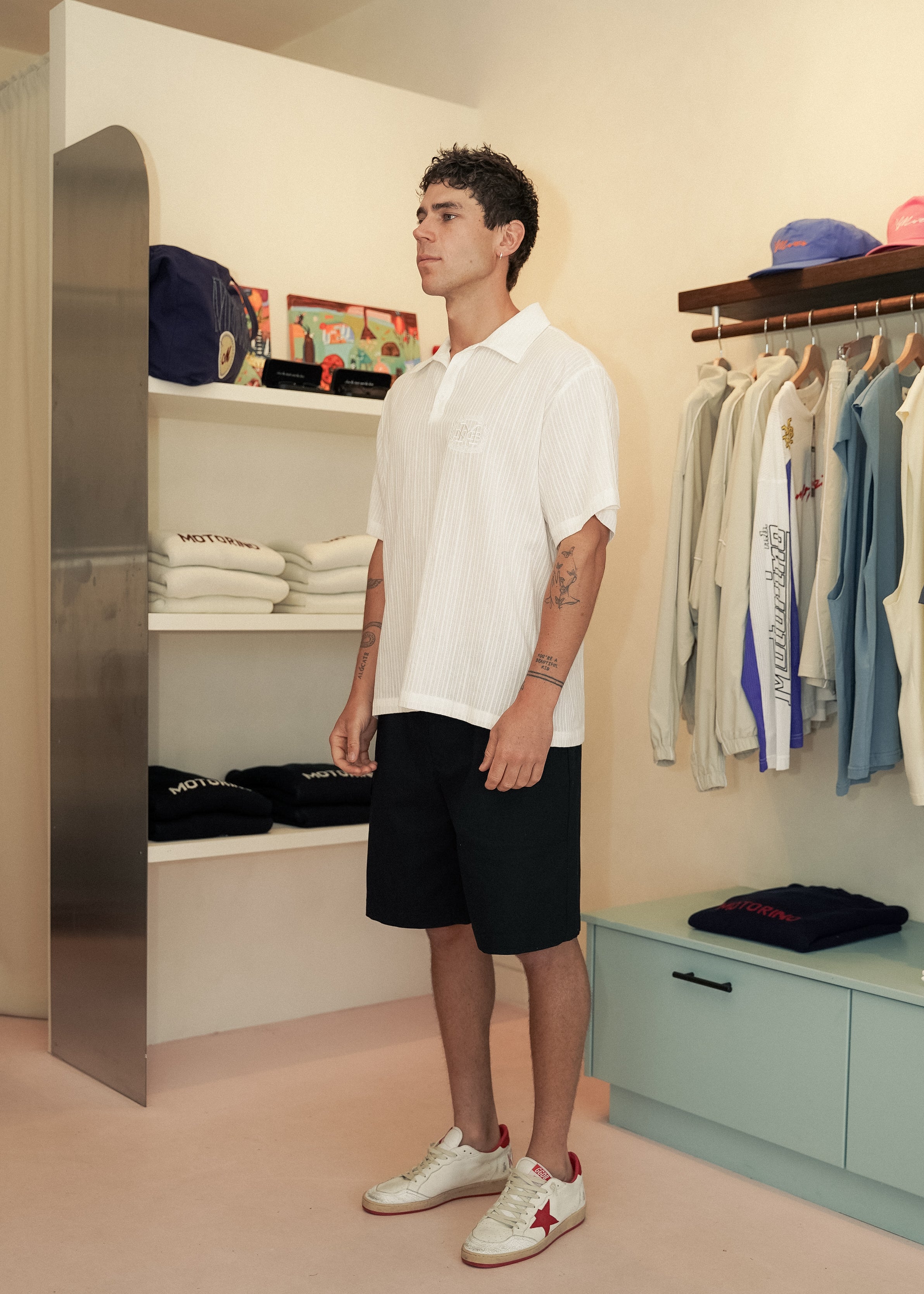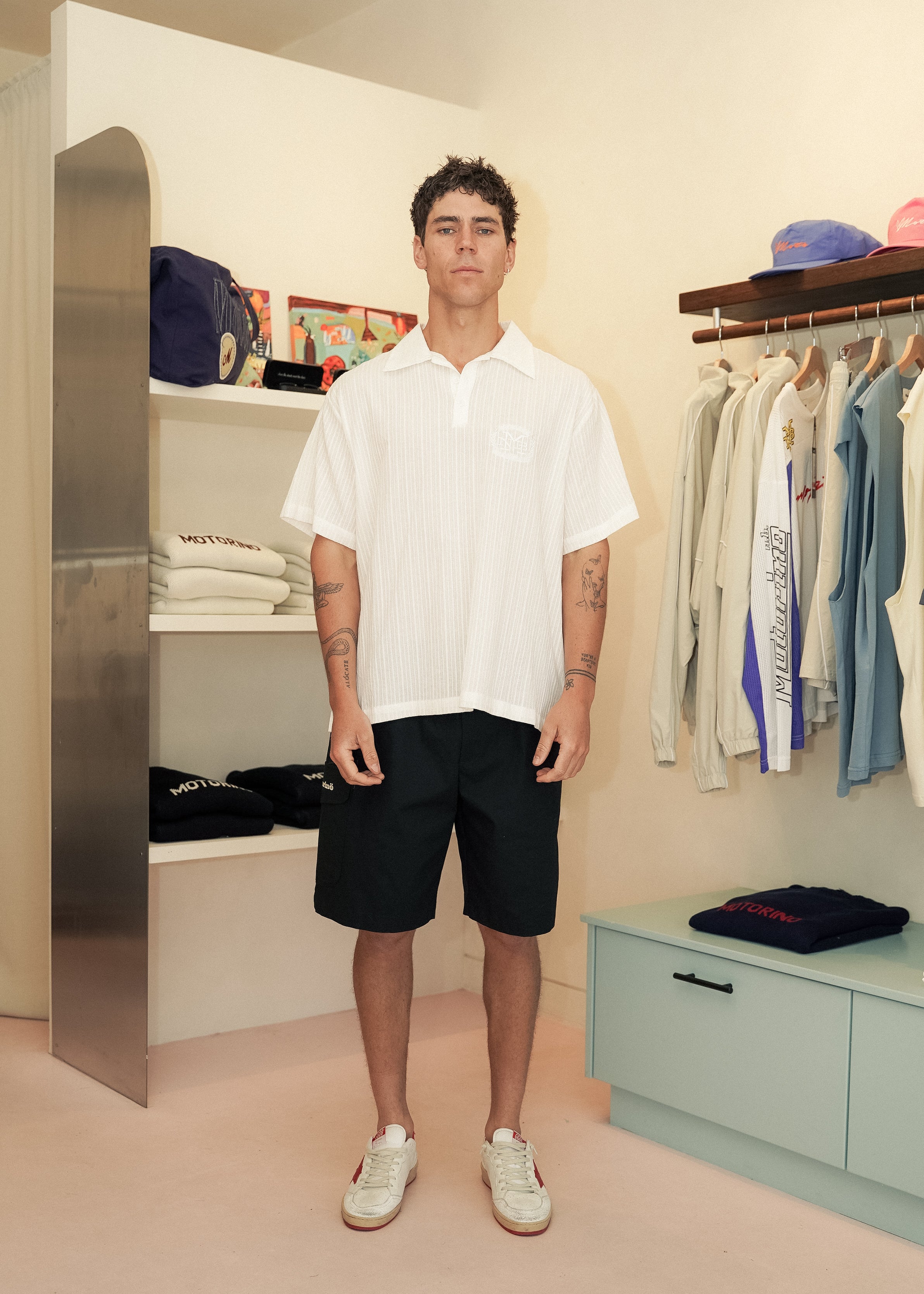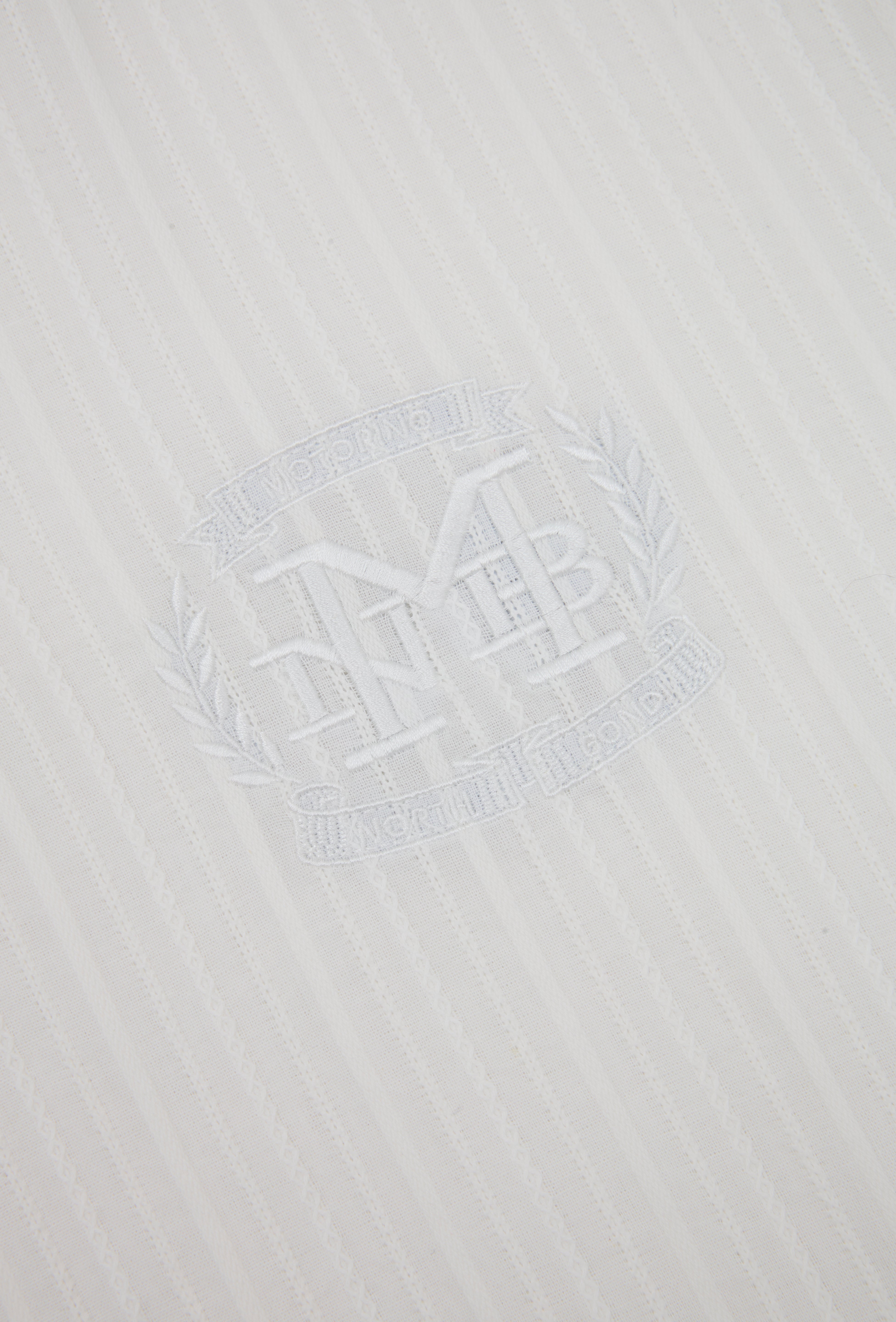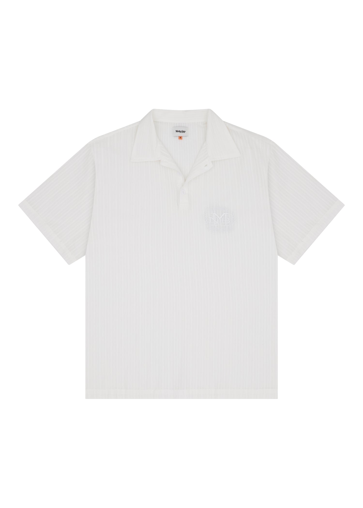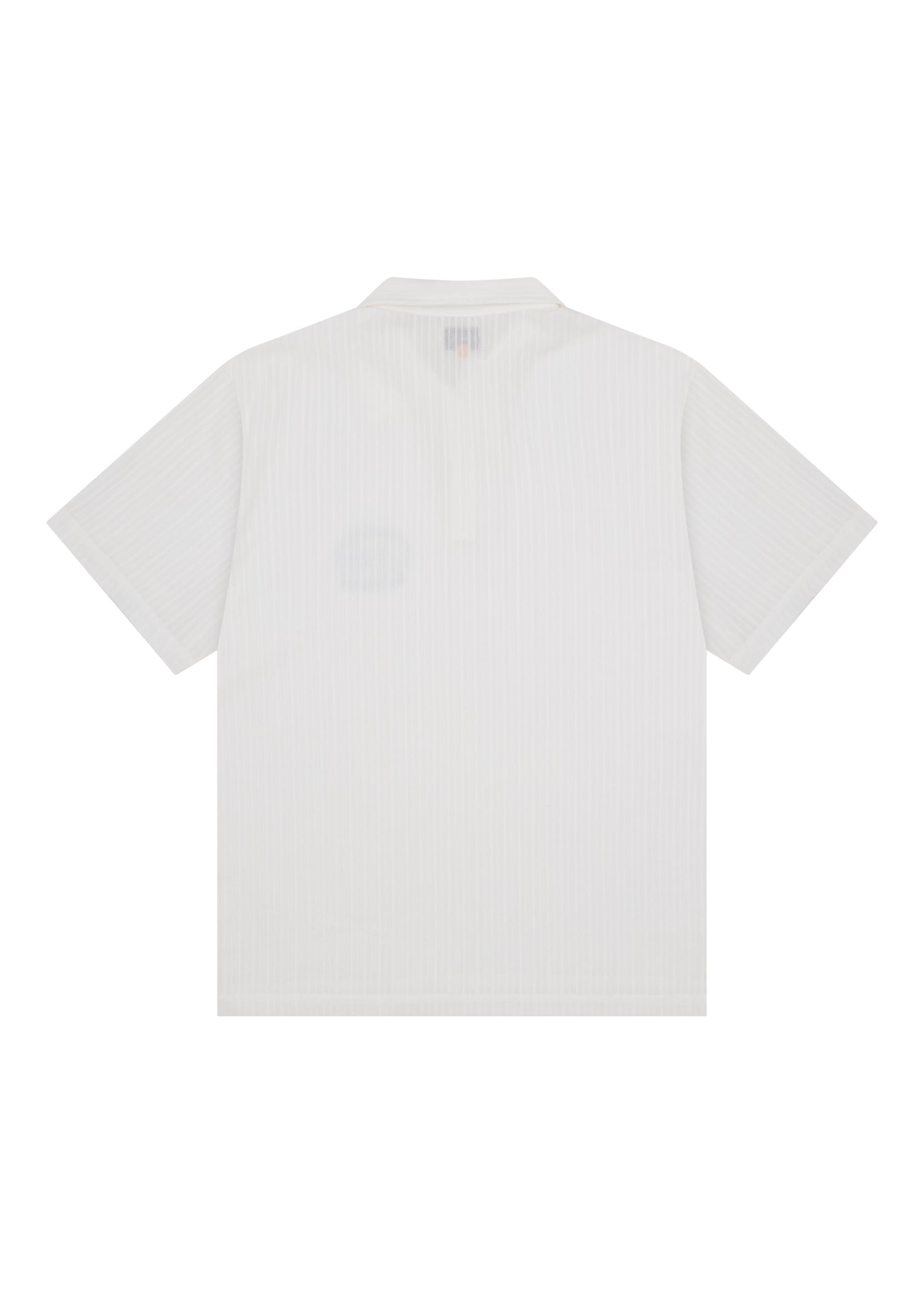 The Jacquard Crest Polo in White elevates a warm-weather classic with premium texture and subtle detailing. Crafted from a soft, breathable jacquard knit, the fabric features an all-over vertical pattern woven directly into the garment for a lightweight, vintage-inspired feel. Finished with an embroidered Motorino crest on the chest and a clean two-button placket, it brings a polished yet relaxed aesthetic perfect for long summer days.
