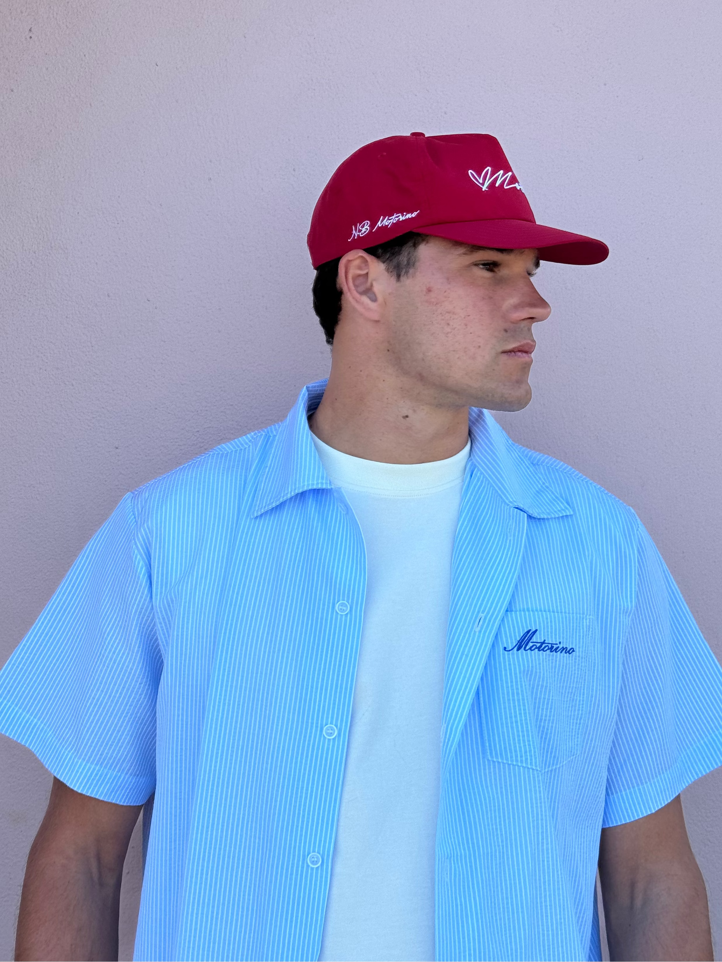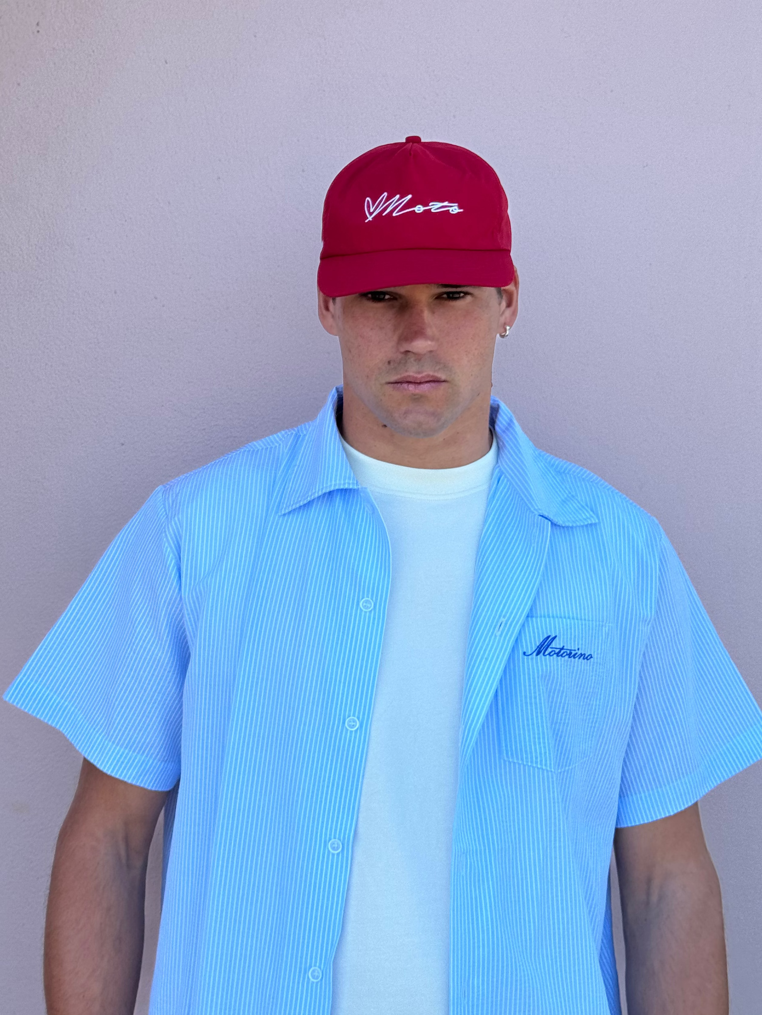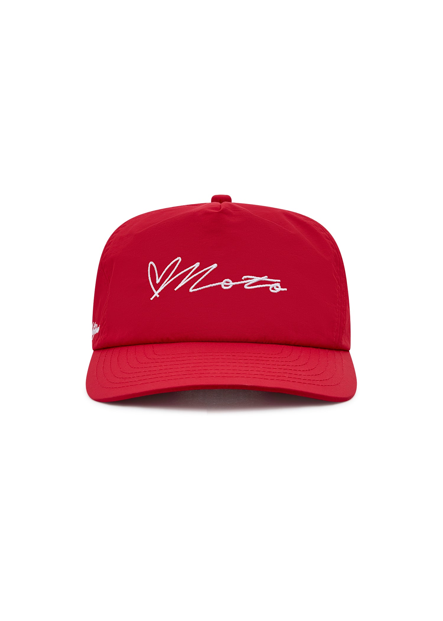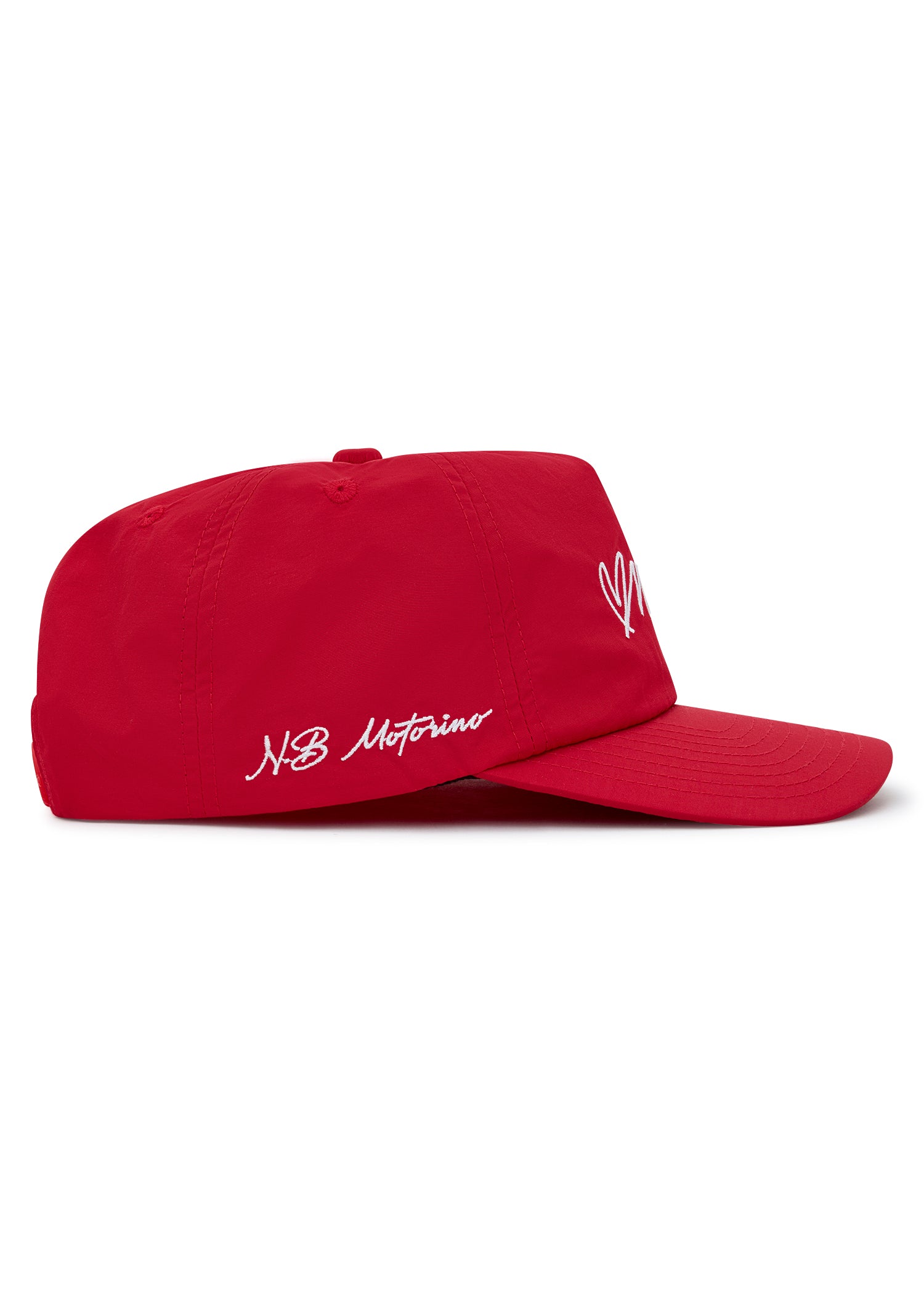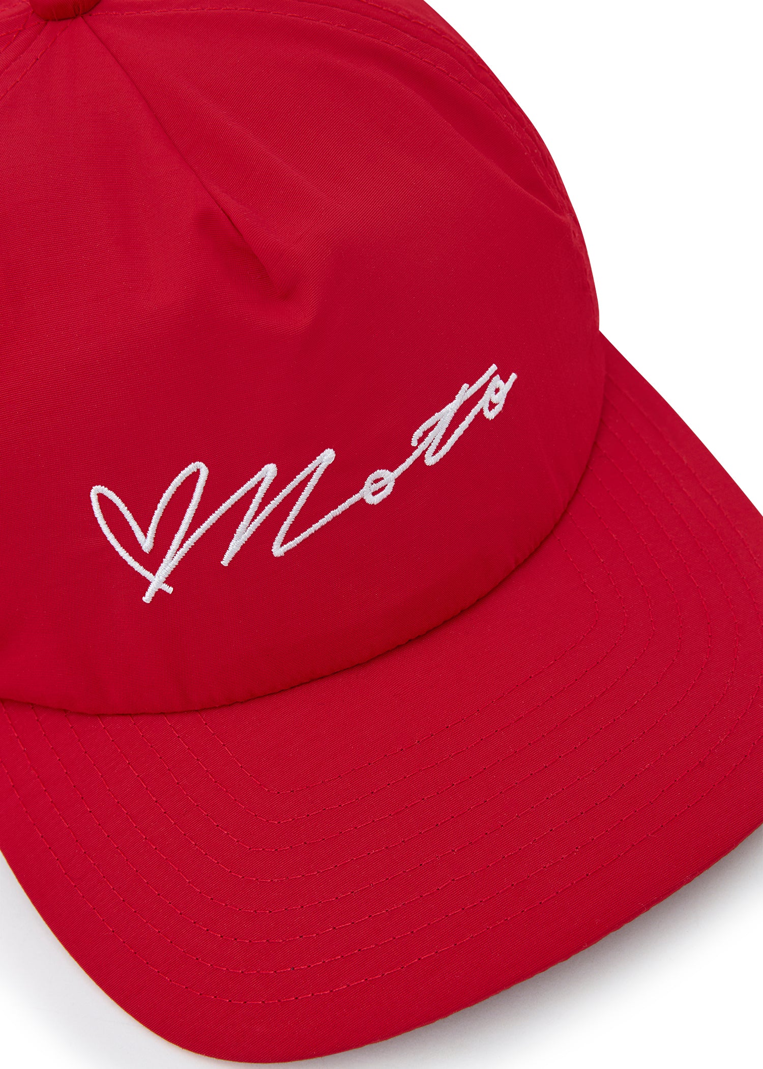 - Motorino's classic 'Moto Love' logo in white embroidery ft. side embroidery