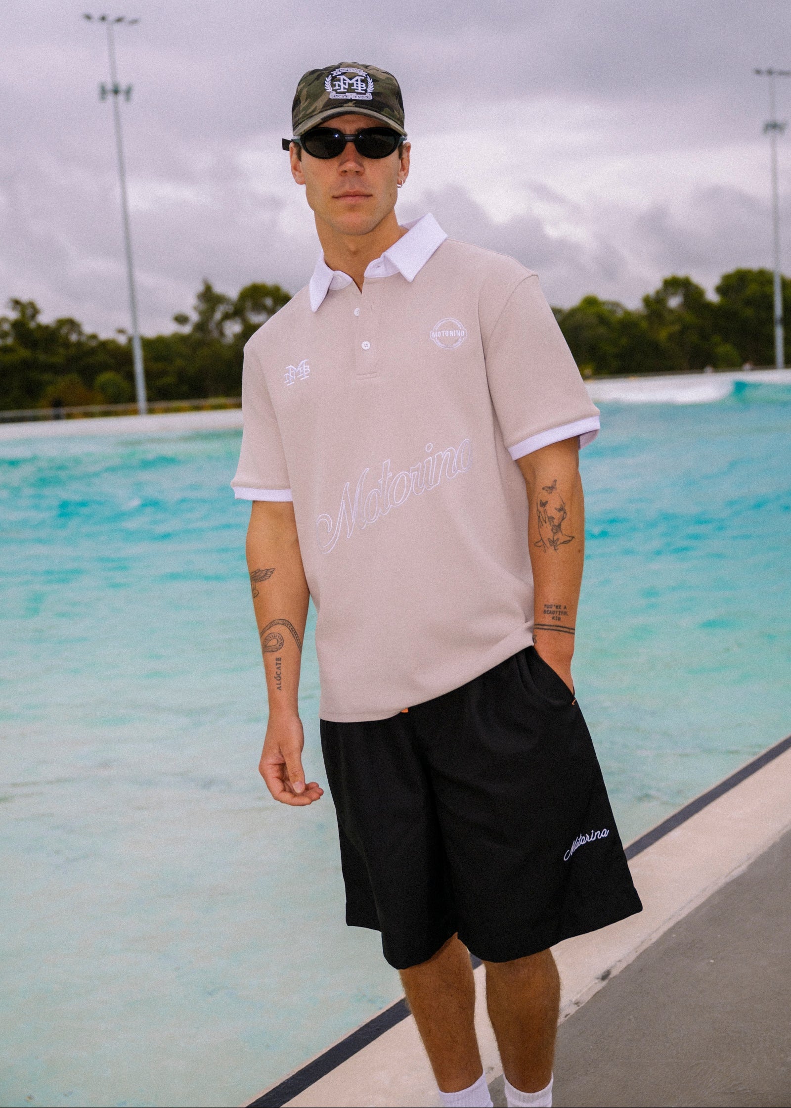 The Motorino Polo takes inspiration from vintage athletic wear, reimagined with a distinctly modern Motorino touch. Crafted from heavyweight 100% cotton, this piece delivers both comfort and durability with a structured, premium hand feel. The deep navy body is contrasted by a crisp white collar and sleeve trim, while embroidered details — including the bold Motorino logo across the chest and dual chest emblems — highlight the brand’s signature fusion of heritage and lifestyle. A relaxed, slightly boxy silhouette gives it that effortless balance between classic sportswear and refined street style.