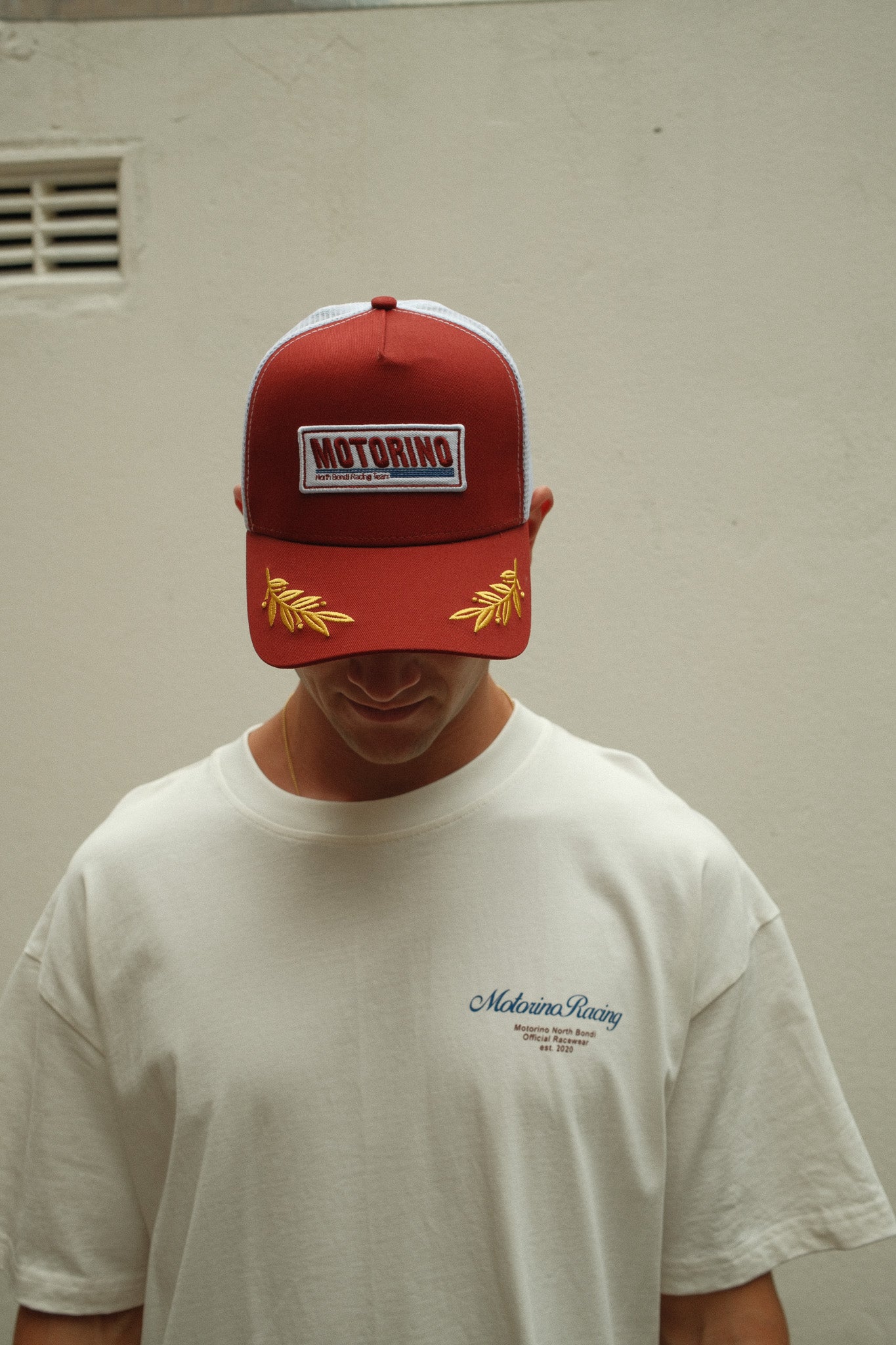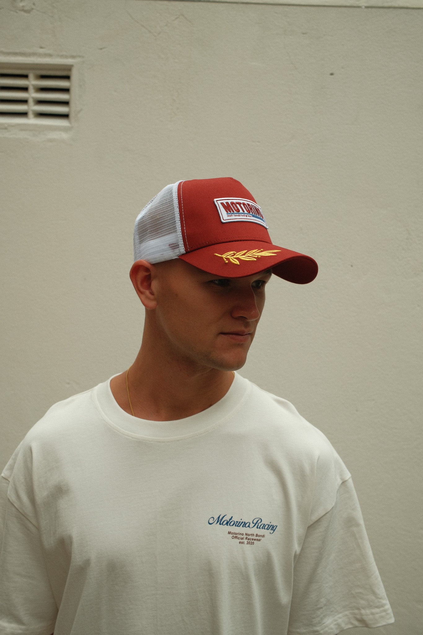 The Motorino Trucker Cap is a modern take on vintage racing style. Featuring a bold embroidered Motorino “North Bondi Racing Team” patch and gold laurel detailing on the brim, this cap captures that retro motorsport edge with a coastal twist. Designed for breathability and comfort, the mesh back keeps things cool while the structured front panel and curved brim offer a sharp, classic fit.