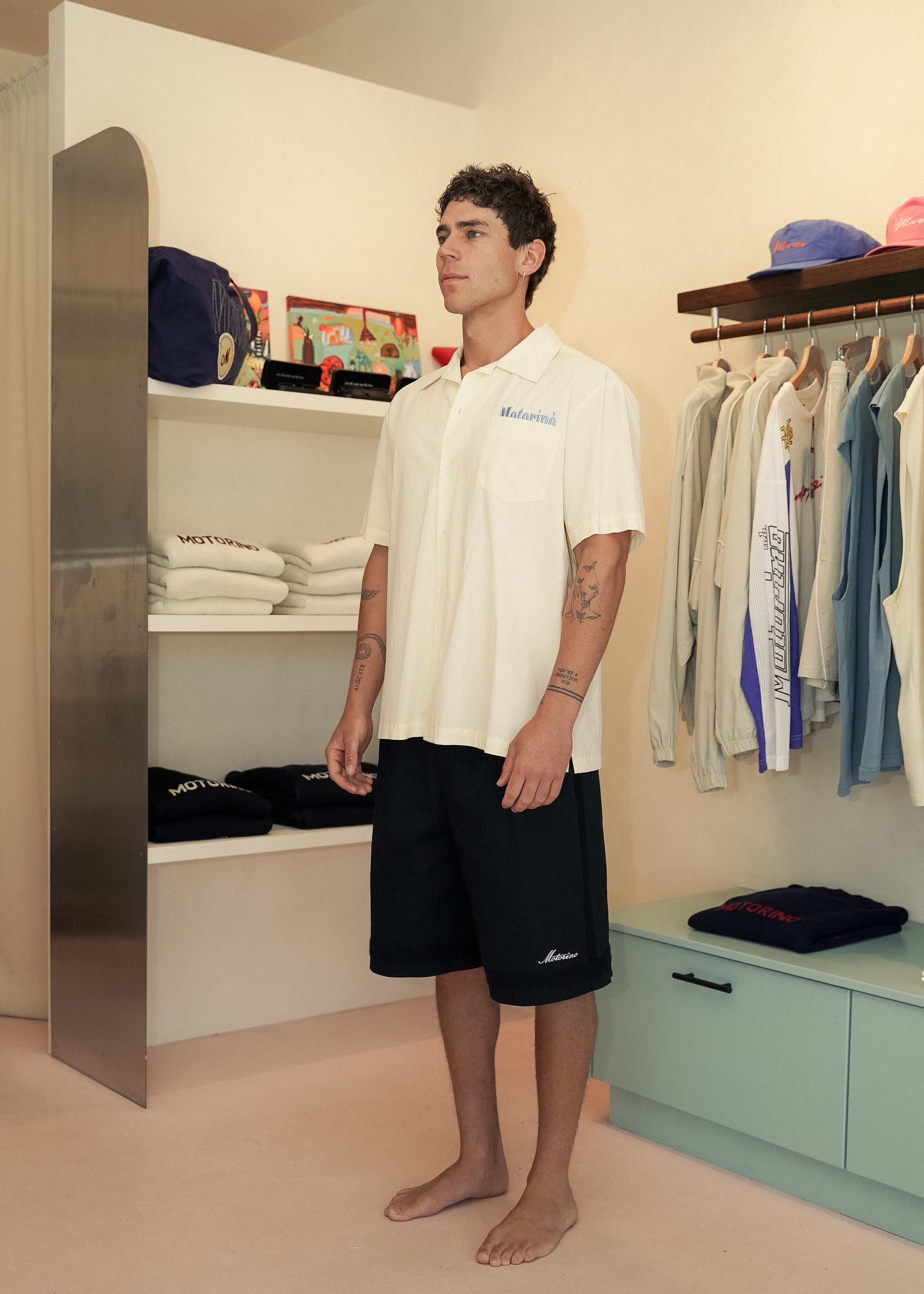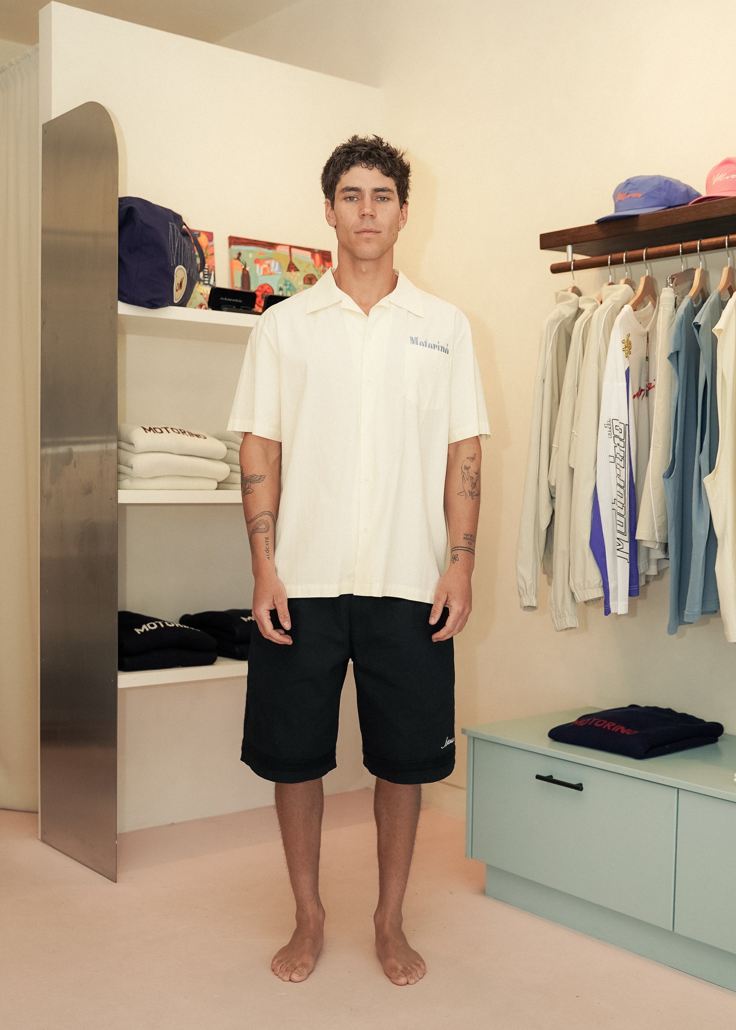 The ultimate any day, any time, summer shirt. Bringing the vibes through simplicity, this is a classic lightweight summer collar and colour. Featuring our new signature mid-pocket 'Motorino' embroidery. Perfect to button up, button down or wear as an over shirt.